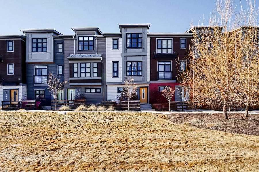 Spectacular Townhouse in Walden with double parking. With beautiful hardwood in the entire to home , you'll enjoy this open layout and large windows. The spacious foyer leads up the main living space featuring a beautiful kitchen with stainless steel appliances, modern backsplash, pantry, breakfast bar and patio door to your west facing balcony . The patio is large enough for a full patio set and has a gasline to your BBQ. It's the perfect place to enjoy your evening sun. The dining room can accommodate a large table and the spacious living room overlooks the park . There is also a two piece guest bath on this level. The upper level has double master bedrooms, both with full ensuites and walk-in closets. There is also a built-in desk in case you work from home, as well as stacked laundry. You'll love some of the upgrades like the quartz countertops throughout, smart light switches, stunning hardwood and fresh paint. And don't forget, there is tandem garage that will comfortably fit two vehicles and you can park another vehicle on your driveway. This home is super clean and move-in ready. All this in a great location with quick access to Stoney, McLeod trail and all the shopping in Legacy.
