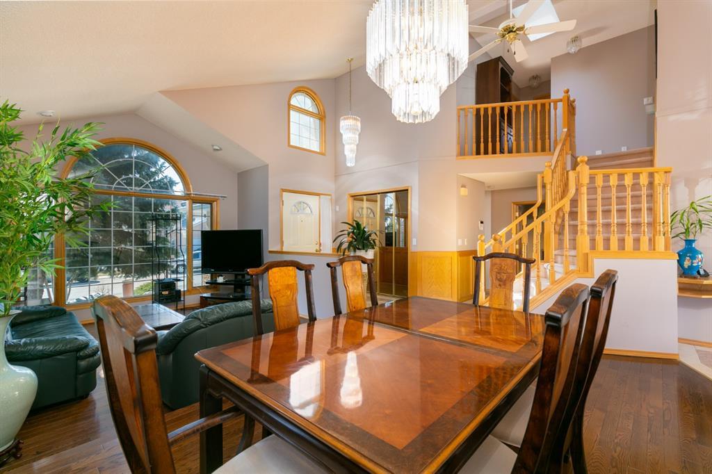 Welcome to prestigious Hamptons! Current owners have enjoyed this gorgeous 2-story split for 30 years. Fully finished with 3500 Sq Ft of developed living space, including an office on main floor perfect for those remote work days. The entrance foyer greets you with vast openness. Solid hardwood floors throughout main. The family room features beautiful built-ins and a traditional wood burning fireplace for gentle warmth and ambiance. The kitchen features granite counter tops and a functional center island. Plenty of cabinetry for all your storage needs. Breakfast nook has direct access to large composite deck with BBQ gas line. There is separate formal dining and separate living room, both with vaulted ceilings. Main floor den has double french doors. Upstairs offers 3 spacious bedrooms, plus a 5-piece ensuite with jetted tub and separate shower. The fully developed basement is finished with 2 additional bedrooms, a huge recreation room, and 4-piece bath. Upgrades include luxurious 50-year rated clay tile roofing (installed 2009) , aluminum cladded windows, and an oversized garage. Nice quiet location siding onto green belt. Only 2 blocks to tennis courts and green space. Walking distance to Superstore, Starbucks, and other amenities. Convenient access to Stoney Trail and Beacon Hills Costco. Great value for this quality built home, available for quick possession. Act soon before it's gone!