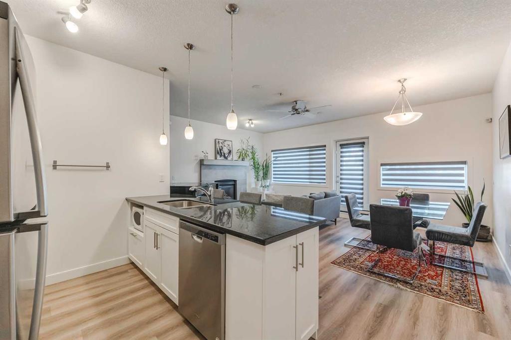 LOVE LIVING HERE...Welcome to The Greystones 2 bedroom, 828 sq ft condo located in the exclusive Lower Mount Royal neighborhood featuring amazing access to an abundance of cafes, restaurants, shops, exercise venues and more! TWO BEDROOMS (or use one as an office or den maybe) with the primary bedroom featuring a spacious 4-piece ensuite bathroom with large bath + shower + walk-in closet. This amazing condo provides you with a spacious washer/dryer + room for all your laundry items. The LIVING ROOM is such a classy space and features a stunning gas fireplace with mantle for your special art or television. The gourmet KITCHEN with stainless steel appliances including the gas stove, features a great eating bar and loads of cupboards for whatever you choose. The DINING area is big enough for a large table + has convenient access to the sunny balcony + barbeque area with gas line. This condo comes with a huge storage locker (#37) and titled parking space (#52). Recent windows and patio door replacement, upgraded laminate floor is also good to note. Summer is just around the corner for you and your friends to enjoy!