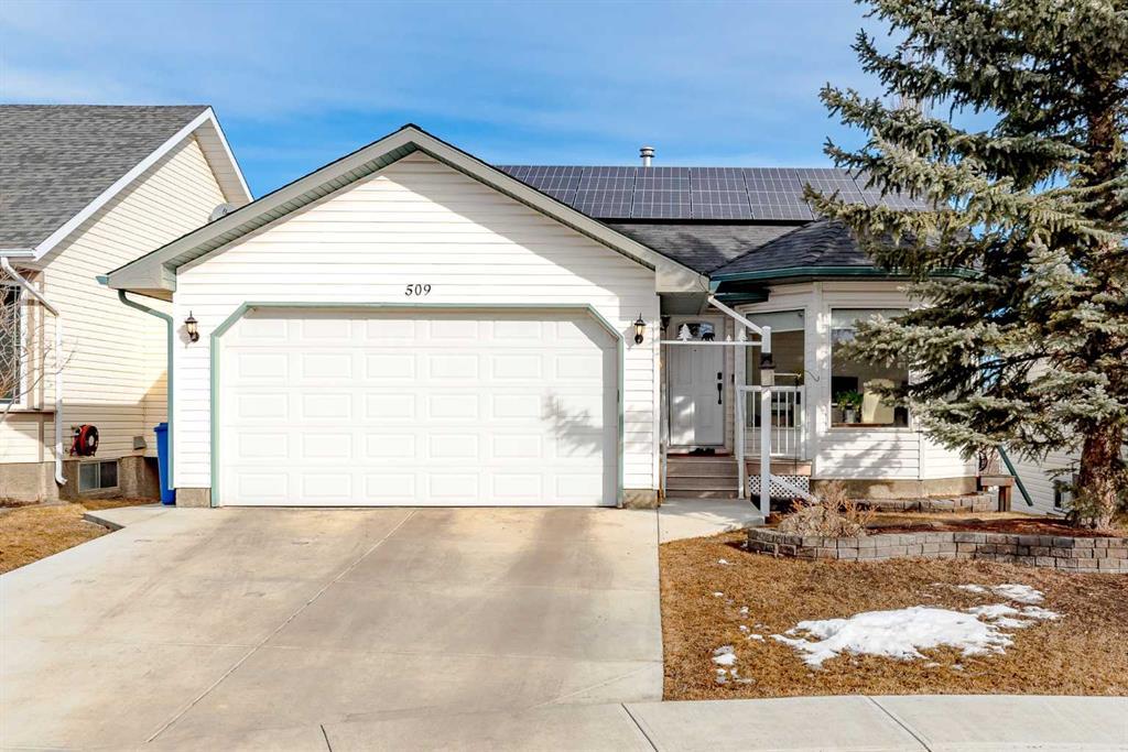 Introducing this beautiful WALKOUT BUNGALOW nestled on a south facing lot 1 door down from a playground and close to the Sheep River Pathway. There have been many recent improvements to the home including: Solar system, furnace, hot water tank, central A/C, roof, kitchen cupboards & counters, driveway, composite decking, gas fireplace, bathroom upgrades, LED light fixtures, carpet, stove, and 240v electric to the garage. The spacious main floor offers 3 bedrooms, including the primary with walk-in closet and 3-piece ensuite, the other 2 bedrooms have a passage way joining them that could easily be closed off if the new owner desires. There is a front flex room which would make a great home office or dining room, living room with gas fireplace and access to the deck. Kitchen with pantry & dining area, vaulted ceilings, and hardwood throughout the main floor. The fully finished walkout basement features large windows for lots of natural light, a big bedroom, family room with projector and patio doors, 4-piece bathroom, and a den area that could easily be converted to an additional bedroom. The backyard has a concrete patio under the deck, storage room, and a back lane. Located close to schools, parks, shopping, dining, pathway system, and other amenities. Call today to book your viewing!