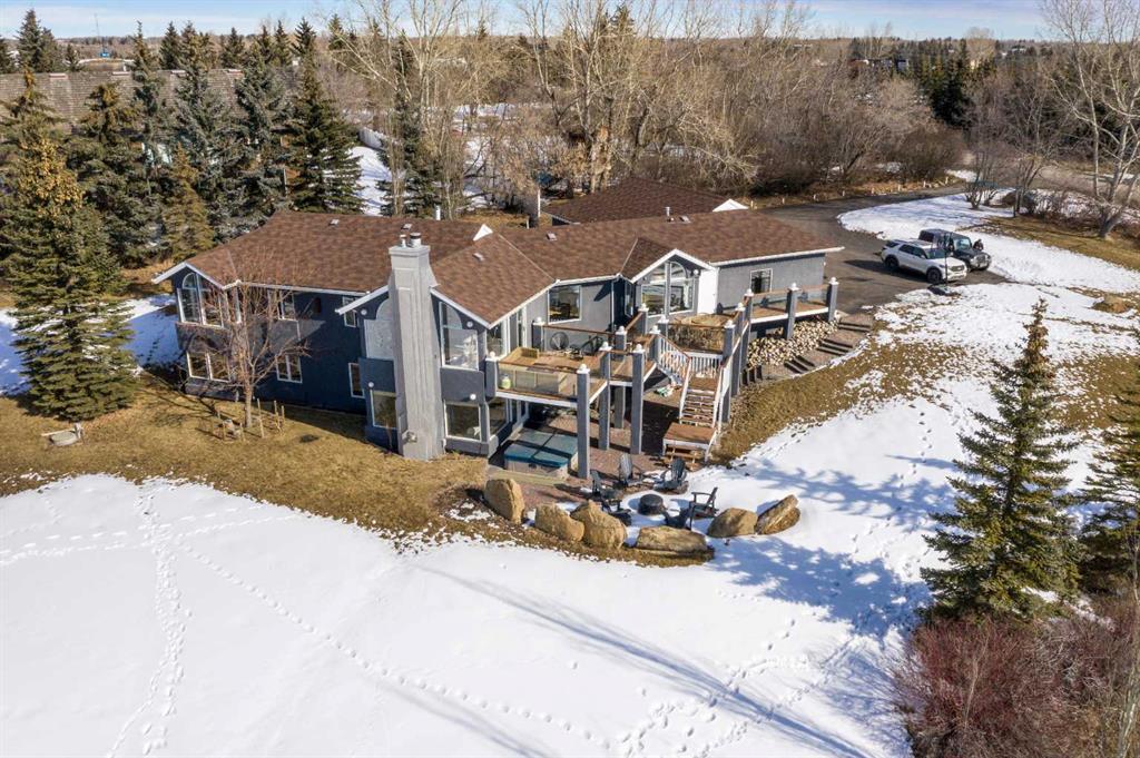 Open House - Saturday & Sunday - March 16-17 - 2pm-4pm. Enjoy breathtaking city views and stunning mountain scenery to the west! This remarkable property is located in an exceptional spot. Within a block of your 2-acre property, just outside city limits, you can walk to Tim Hortons, a Convenience Store, Community Center, and Bearspaw School—all just 15 minutes from downtown. Revel in the convenience of inner city amenities combined with the privacy of the countryside. The location is almost too good to be true, offering amazing city and mountain views from every window. This house has the most natural light of any house you have ever been in! Relax in the tranquility of the naturally wooded windbreak, surrounded by beautiful lawns that embrace this 5-bedroom, 4-bath family home. This open and airy walkout bungalow seamlessly connects you to the outdoors while providing a sense of home. There's an attached, oversized 4-car garage and paved parking for 12 more vehicles, ensuring plenty of space. A separate entrance to the lower level adds flexibility, and there are multiple entertainment areas both inside and outside. Relax in the outdoor hot-tub or infrared sauna! This house really has it all. Let your kids roam freely on the spacious grounds while 1/2 acre lot has been fenced for your beloved K9 friends. The passive solar design integrates modern conveniences seamlessly, providing an eco-friendly touch. Recently installed Fibre Optic gives you lightening fast internet, a rare feature in Bearspaw! With a prestigious address near Crowchild and Stoney Trails and in the potential path of the LRT, this property offers excellent investment potential to go with its extraordinary features.