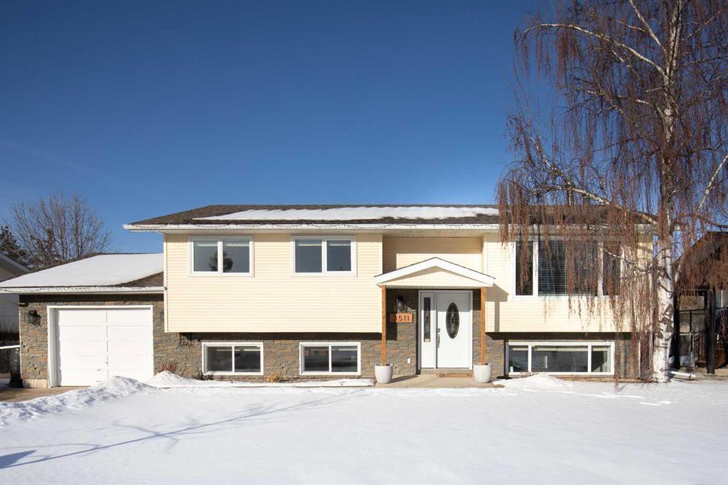 Welcome to 3511 51A Ave. This bi-level home offers a cozy living experience in the heart of Innisfail. Featuring 4 bedrooms and 2 bathrooms, this home provides a perfect blend of comfort and convenience. Step into the welcoming living space where the kitchen and living room flow seamlessly. Kitchen provides ample storage space including a large pantry, island includes counter height sitting area for those quick morning breakfasts. Wood burning stove between the dining and living area makes this a perfect space for entertaining or relaxing. Down the hall you will find two bedrooms and a 3 piece bathroom with a huge tiled shower. Downstairs you will find a cozy family room with electric fireplace, and dry bar just off to the side, as well as the entry door to your attached heated single car garage. Family room also has speakers and sound system for entertaining, speakers are also in the garage. Two more bedrooms and a 4 piece bathroom and laundry complete the basement. Unwind on the large 2 tiered deck is which conveniently covered to enjoy BBQ's on all year long on, or enjoy the sun on lower tier. Large back yard, with new back fence and shed for storage. This home has hot water on demand, in floor heat upstairs, and baseboard heat in the basement.