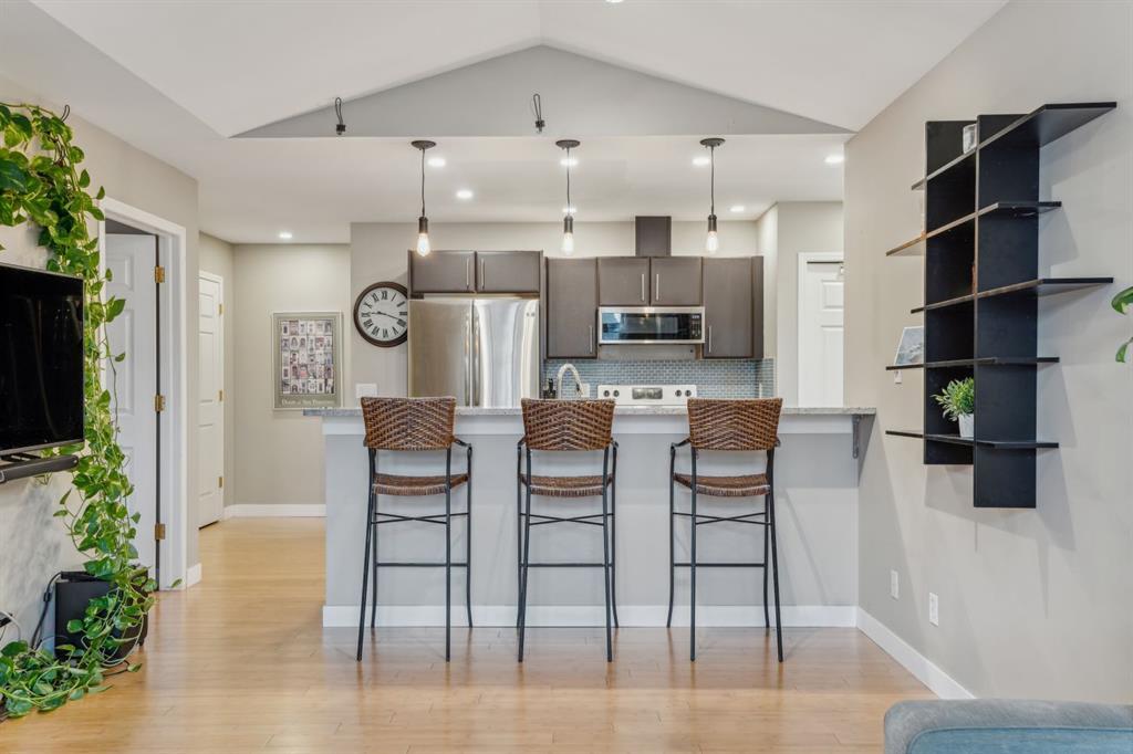 LOCATION, LOCATION! Ideally located in one of the most sought after townhome complexes in Inglewood! The vibrant community is rich in history, charm and culture! To know Inglewood, is to LOVE Inglewood! This beautifully updated townhome offers modern conveniences with an open concept layout, perfect for peaceful relaxation or entertaining! Elegant kitchen features rich timeless cabinetry, stainless steel appliances and gleaming granite counter tops accented by new recessed lights and pendants over the island peninsula. The living room boasts soaring vaulted ceiling, gorgeous arched window streaming in natural sun light, and a feature stone fireplace to snuggle up by at the end of a long day. 2 spacious bedrooms and an updated 4-piece bathroom complete this great home. Additional features include in floor heating and newer washer and dryer, new Microwave Hood Fan, built in speaker system, flat painted ceilings throughout. Enjoy outdoor living on your private balcony with a gas line for your BBQ and a single attached garage with additional driveway parking and convenient street parking for visitors. Walking distance to the community garden, great restaurants and shops and all that the amazing Inglewood has to offer. With only a short commute to Downtown, you have easy access to Deerfoot & Blackfoot trail, this is definitely one to view. A golf course nearby, bike trails and the Inglewood bird sanctuary just minutes away. Set in the well managed and PET FRIENDLY (with board approval) Aviara complex! THIS ONE WILL NOT LAST!!!! Not often do units in this complex come up for sale, and when they do they are quickly snatched up!