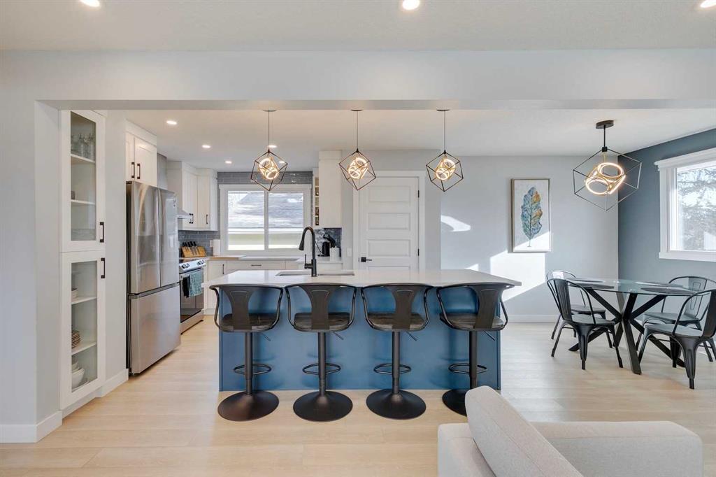 Welcome to this beautifully renovated FIVE BED, THREE BATH bungalow just steps from Nose Hill Park. Renovated down to the studs, this home provides every modern want and need. As you walk in, you are greeted by a custom kitchen supplemented with QUARTZ counter tops and DESIGNER LIGHTING. Luxury Vinyl Plank runs through the upstairs of the home, all bathrooms are tiled, and a carpeted basement for the cold winter nights. Located on a corner lot this property offers a HUGE amount of both front and back yard space. Just steps from NOSE HILL park, recreation has never been so close. Not to mention, you are just steps from an OFF-LEASH park for any furry companions. To add, the home is located within walking distance to not just one, but THREE SCHOOLS. Frustrated with your utility bills? This home offers BRAND NEW SOLAR PANELS included in the sale along with a transferrable warranty. Seeking a mortgage helper? If the solar isn't enough, the home is easily suitable with a private door entering the downstairs from the back yard. Don't wait! Call your realtor for a viewing today!