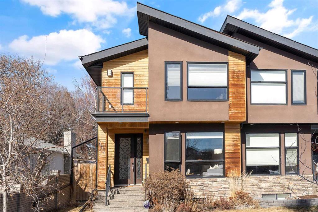 This stunning inner-city luxurious retreat is perfectly located just steps from the endless activities at Confederation Park. The impressive upgrades begin immediately with gorgeous architecture creating a jaw-dropping first impression. Inside is a modern and casually elegant sanctuary with over 2,800 sq. ft. of developed space and a timeless design. 9’ ceilings and wide plank hardwood floor adorn the open and airy main floor. Oversized windows stream natural light into the front living room. The cook of the household will swoon over the upscale gourmet kitchen featuring built-in stainless steel appliances including a 6 burner gas cooktop, seemingly endless cabinetry, quartz countertops and a large centre island for everyone to gather around. Easily entertain in the dining room with unobstructed views of the main floor for unbeatable connectivity. Dramatic floor to ceiling stone surrounds the fireplace in the living room, inviting you to sit back and relax. A glamorous open riser staircase illuminated by a sunny skylight leads to the upper level. Soaring vaulted ceilings add to the grandeur of the primary oasis. Enjoy peaceful morning coffees or evening beverages on your private balcony with views of this mature community as the backdrop. Adding to the luxuriousness is a huge custom walk-in closet and a lavish ensuite boasting dual sinks, a jetted soaker tub, an oversized rain shower and a skylight streaming in natural light. 2 additional spacious bedrooms with large closets share the stylish 4-piece family bath. Laundry conveniently completes the level. The basement is finished in the same sophisticated style as the rest of the home encouraging everyone to convene in the family room for games and movies in front of the second fireplace or built-in media area. Grab a snack or refill your drink at the opulent wet bar. A 4th bedroom and another full bathroom are also on this level. A large patio in the private yard promotes summer barbeques and time spent unwinding nestled behind the insulated and drywalled double garage. This gorgeous home is only rivalled by its outstanding location – this extremely coveted neighbourhood borders Confederation Park with several golf courses and cross-country skiing trails, the Winter Club, transit, shops, schools, and parks and is an easy commute downtown.