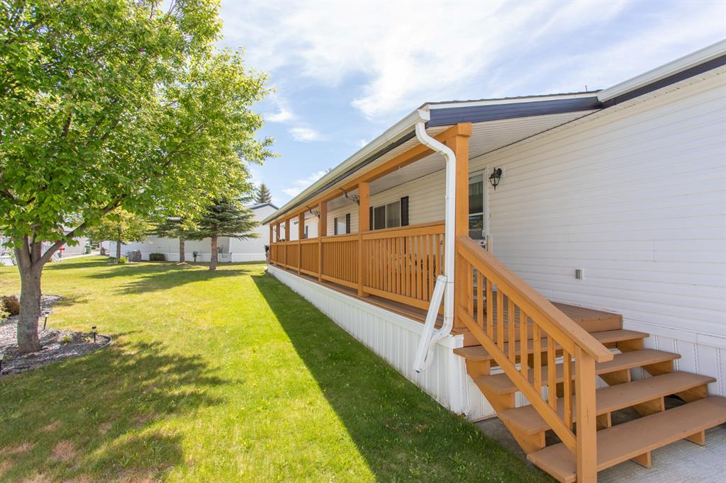 The original owner of this pristine modular home is ready to move on, and the door is open for a new owner seeking maintenance free living in a quiet and safe adult gated community. This home sits well back from the street, and faces an open landscaped yard which can be best enjoyed from the massive covered deck. Inside, the main living space is bright, clean and welcoming. The large kitchen with corner pantry offers ample wood cabinetry and countertop space, and is open to the dining area and a big bright living room. The primary bedroom at the back of the home features a walk-in closet and 4 piece ensuite with jetted tub, and two more large bedrooms and a main bath and are located at the other end of the home. The attached heated garage measures 17x23 feet and offers parking and workspace, but it is currently set up as a dedicated recreational space perfect for entertaining, TV watching, or hosting dart tournaments. This home is in excellent condition, well maintained since new, and features central A/C! The park offers well manicured lawns and landscaping, a clubhouse, playground, tennis court, RV storage and excellent neighbors. Welcome Home!