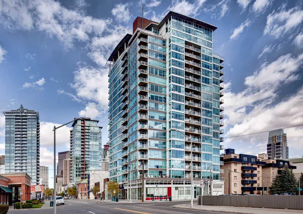 Step inside this spacious corner unit, where abundant natural light fills every corner, revealing the chic urban living space within the renowned "Chocolate" complex. Embrace the spacious feel of the open layout, highlighted by impressive floor-to-ceiling windows that bring the outdoors inside. The well-equipped kitchen provides ample storage, a complete appliance set, and a convenient breakfast bar for the perfect start to your day. Explore the flexibility of the layout, featuring one bedroom alongside a versatile den, ideal for extra space or a home office. Pamper yourself in the stylish four-piece bathroom with a modern vessel sink and maple cabinetry, blending elegance with functionality. Enjoy the convenience of an in-suite washer and dryer, along with additional storage space. This unit boasts enhancements like hardwood flooring and fresh paint throughout, elevating your living environment. The building offers amenities such as a party room and rooftop garden to enhance your lifestyle. This unit is located in a prime walkable area and provides easy access to First Street Market, downtown, public transport, the Stampede Grounds, Mission, the lively 17th Ave district, and more. Offering exceptional value in Calgary's urban setting, it's time to seize your ideal investment!