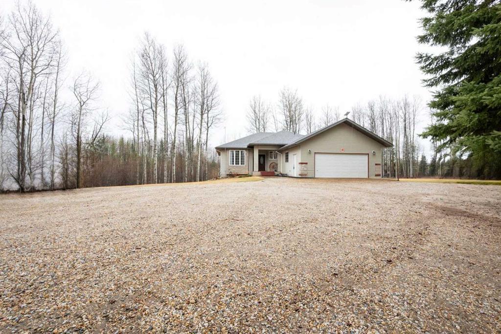 Immaculate 4 Bed 3 Bath Big 1585sq-ft Bungalow Acreage , ONLY 10 MINUTES FROM GRANDE PRAIRIE! Situated on 4.31 acres privately treed, with nice long private driveway. As you pull up to your new home you will appreciate the surrounding trees and private + peaceful oasis it boasts. Entering your new acreage you will adore the good sized entry way, the stretches into the popular open concept kitchen, dining, and living room. No lack of windows boasted on main level, plus south facing allowing natural light in all day long. Kitchen hosts ample cabinet + counter space, over the sink window, and must have kitchen island with bar stool seating. Dining area allows for a large table as you see great for all family & friend gatherings. Living room is welcoming, and complimented by Jatoba Cherry Hardwood throughout the whole main level. Remainder of main level is made up of spacious master bedroom with 4 piece en-suite including a soaker tub and walk in closet, two more bedrooms, full bathroom, and desired main floor laundry with small mudroom that leads into your heated double car garage that has 220 power, and hot + cold taps as well. Heading downstairs to your walk out basement that has a grand living room with big windows, theatre room with surround sound and built in speakers, bedroom, and bathroom that just needs finishing touches on future tiled shower. Utility room has no lack of space with shelving for storage, and hot water tank just replaced last year. Making our way outside you will find a coverall shed that can stay if you wish, fire pit area just in time for summer gatherings, 25x50 garden area, good sized deck with natural gas BBQ line and concrete patio outside your walkout basement with out door speakers. No lack of yard space for RV parking, or building a future shop. Book your viewing today as you will be pleased with the overall condition of this home in person!