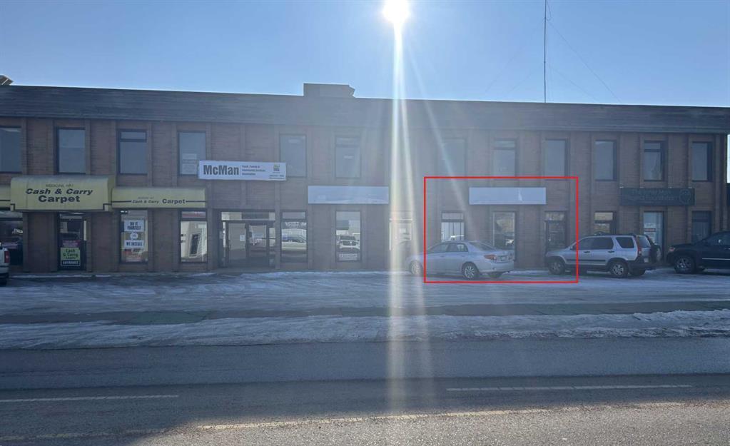 This main floor commercial space offers six offices, a large reception area, 1 washrooms, and a large storage space in the back with overhead door. Newer vinyl flooring throughout. This space can be easily enlarged if more space is required, as the space next door is also available. Operating costs are estimated to be $2.25/sq ft.