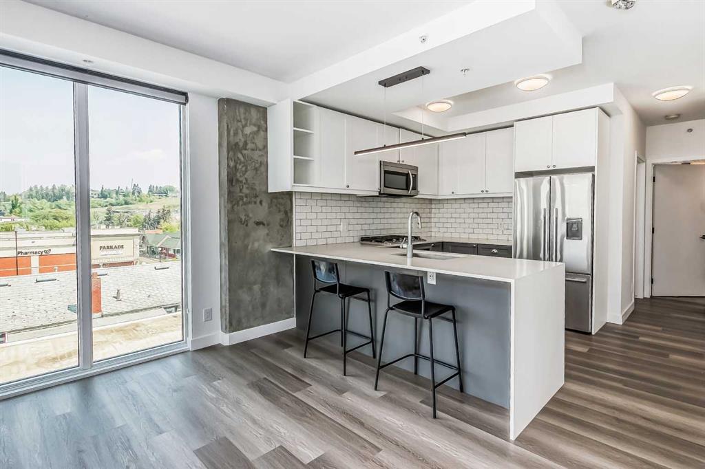 Luxury corner unit condo in the heart of Kensington! The Annex offers a lifestyle of convenience in Calgary's top rated community. This 2 bedroom, 2 bathroom has loads of natural light, a stylish kitchen with quartz countertops, stainless steel appliances & tiled backsplash. Primary bedroom has a walk-in walk-through closet that opens to the master ensuite bath with glass shower, the large west facing balcony comes with a natural gas bbq hook up, This condo is proudly Alberta's 1st LEED v4 Gold Multifamily Midrise. LEED v4 is the latest framework and standard for the next generation of environmentally friendly structures and green buildings, highest standard of comfort with inclusive features like in-suite and on-demand heating and cooling controls, and individual Heat Recovery Ventilation (HRV) for superior indoor air quality. Relax on the outdoor rooftop patio while you enjoy Calgary's best city skyline view which also features a dog run, patio furniture, raised garden beds, gas fire pit & 2 bbq's for entertaining all your friends. This prime location neighbourhood has transit, grocery store, access to parks and river paths, restaurants, coffee houses, and boutiques and is just a short walk to the downtown core. The Annex allows SHORT TERM RENTALS.