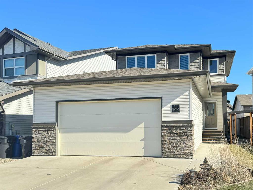 Welcome to 70 Moonlight Blvd W, a stunning Glenwood model by Galko Homes Master Builder, located in the family-friendly subdivision of Copperwood, Lethbridge. This beautifully fully finished 1,587 Sq/Ft 2-storey home offers an exceptional blend of comfort and style, boasting 4 bedrooms, 3 & 1/2 bathrooms, and a large landscaped yard. Upon entering, you'll be greeted by an abundance of natural light illuminating the open-concept living room, dining area, and kitchen, creating a welcoming atmosphere for gatherings and relaxation. The kitchen features one-of-a-kind appliances and a convenient walk-through pantry, providing seamless access to the laundry area and a double garage. Additionally, enjoy the upgraded convenience of soft-close hinges for cabinets, adding a touch of luxury to the space. On the upper floor, there is a master bedroom with a walk-through closet and a full ensuite bath, as well as two additional bedrooms and another 4-piece bathroom. Downstairs, fully developed with all permits, you'll find a spacious family room ideal for movie nights or entertaining, complete with a wet bar for added convenience. This floor also has an additional bedroom and a four-piece bathroom for guests or extended family members to use. Outside, the landscaped yard beckons, providing ample space for outdoor activities, gardening, or simply enjoying the beautiful surroundings. Located in the desirable Copperwood subdivision, this residence offers convenient access to nearby parks, schools, shopping, and dining options, making it the perfect place to call home for families of all sizes. Be sure to check out the video tour in the links or on YouTube by searching for the home address. Don't miss out on the chance to own this wonderful property. Tour today and discover the incomparable charm and comfort of 70 Moonlight Blvd W.
