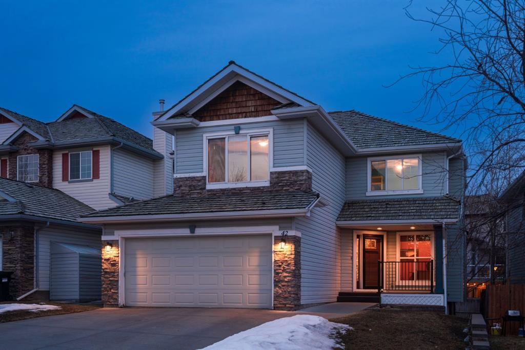LOCATION ALERT A cul de sac location in Springbank Hill, insulated from traffic, steps to a playground and a short walk to Griffith Woods School and Ernest Manning HS. This two storey offers 3220 sq ft of living space over three levels and has been updated throughout and shows exceptionally well with the flood of sunshine it enjoys throughout the day – WARM & BRIGHT… an INVITING SPACE. On the main you will be struck by the re-finished maple hardwoods which run throughout and a new kitchen… beautiful white cabinets , a center island breakfast bar and quartz countertops with newer s/s appliances incl a gas stove. The living space features b/i cabinets and the dining space leads to the rear (composite)deck and yard… a space buried in trees, it will take an effort to find your neighbours come the summer months. There is also a private Den/Home office at the entrance. The hardwoods continue upstairs where you will find the primary bedroom behind French doors and featuring a 5pc bath, newly renovated, with white quartz countertops and a corner soaker tub. The two additional beds are well-sized and share a 4pc bath, also with new quartz countertops. There is also a wonderful Bonus Room up, under 9’ ceilings, with a BRIGHT western exposure you will love in the late afternoons/early evenings. The lower level is fully developed offering a large space for the kids to romp and play, including a media center with a large screen, projector and amplifier, which the Sellers will generously leave for the next families enjoyment…. And soundproofed!!!