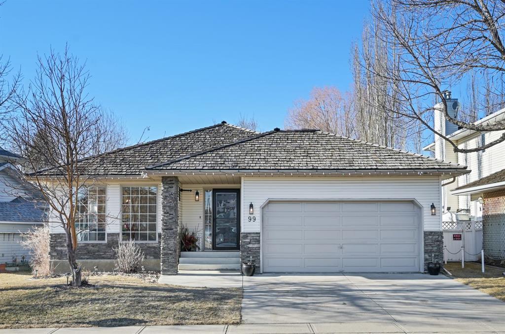 Welcome to 99 Downey Road, a stunning family home nestled in the desirable community of Downey Ridge, Okotoks. This well maintained bungalow offers almost 2,900 square feet of spacious living on both levels. Upon entering you’re greeted with a large bright living space with plenty of natural light. The main living area extends through to the eat in kitchen and back family room which is completed with a cozy wood burning fire place and rear patio doors onto the back deck. The primary bedroom, with 4 piece ensuite, 2 spare bedrooms and another full bathroom complete the upper level of this home. The basment level is wide open for entertaining with a recreation room that spans more than 40 feet in length! There is a none conforming bedroom (widow does not meet egress), another large flex room, plenty of storage and a 3 piece bathroom as well. One end of the rec room has the rough-ins and wiring already in place for a future wet bar or full kitchenette! The double attached garage is slightly over sized and finished with drywall, and has a 2nd man door that leads out to the nicely manicured back yard. This great bungalow is across from green space in the front and has a nicely treed yard with a back lane separating the closest neighbors, the privacy in great! Don't miss your opportunity to own this amazing home in a quiet, central location in Okotoks!!