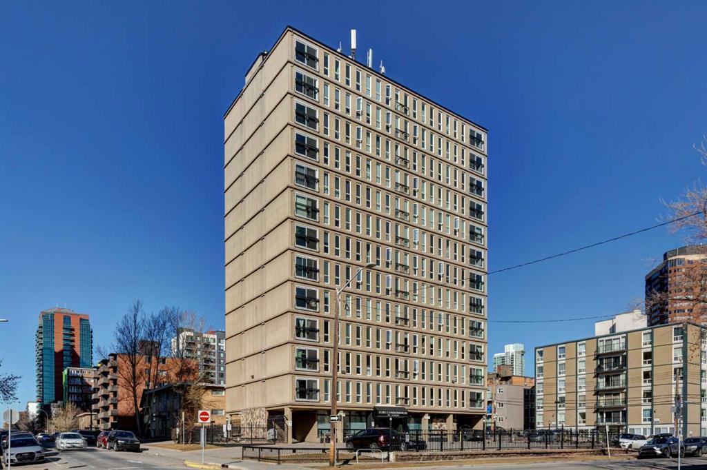 Welcome to this TOP FLOOR penthouse unit in the heart of the Beltline! Featuring 2 bedrooms, 2 full bathrooms, in-suite laundry, 1 assigned parking stall, and awesome downtown views from every room. The open-concept kitchen features stainless steel appliances, granite countertops, and a breakfast bar. The bright living room and dining room offer plenty of space to spread out. The second bedroom and 3-piece bathroom with standup shower can be accessed from the hallway. Finally, step into the primary bedroom retreat! Spanning the entire width of the unit, this oasis is where you can relax and savor the city skyline after a long day. Enjoy the added character of curved bulkhead ceilings, custom vanity sinks, tile flooring throughout, and the romantic hotel-style primary bedroom with luxurious soaker tub. An updated fitness centre, 2 elevators, ground-floor patio and BBQ area, new basement storage lockers (expected soon) and modern buzzer system are some of the building amenities. Reasonable condo fees of $698 INCLUDE electricity (a rarity) in addition to heat and water. The location is phenomenal with 17th Ave, downtown, MNP Centre, the Saddledome and Stampede grounds, and so much more within walking distance. Check out the 3D virtual tour and then book your showing before it’s too late!