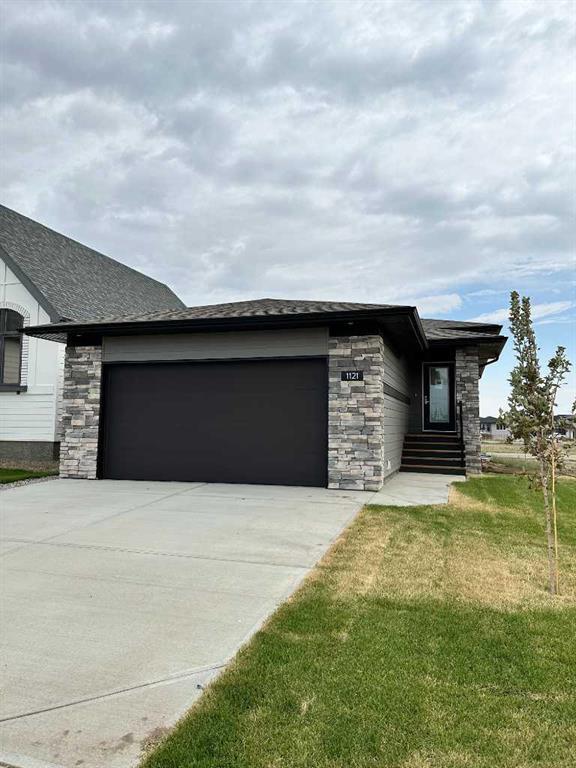 It's not every day you come across a brand new fully finished BUNGALOW facing a park! Through the front door you are greeted by a beautiful open floor plan with top notch finishes. The main floor features the primary suite that has a four-piece ensuite and a walk-in closet, a spacious and open dining, living, and kitchen area... perfect for entertaining! You'll love the large island and the big windows that flood this whole space with amazing natural light. At the front of the home is a den/second bedroom, along with main level laundry and a huge front entry. The now fully finished basement has a huge family room, two great size bedrooms, and a full 3 piece bathroom. With great extras like quartz throughout the home, Hardie board siding, a rear deck and front veranda, front landscaping including underground sprinklers has just been completed, and of course the double attached garage, you need to see this home! Located in The Crossings, this stunning bungalow is located across the street from a brand new park, close to schools, shopping, restaurants, pharmacies, the public library, and the YMCA rec centre.