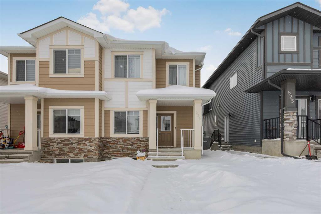 LEGAL SUITE BASEMENT (2 BED)!!! Investor alert or family looking to purchase a beautiful semi-detached build in the fantastic neighborhood of Cornerstone! Exceptional turnkey opportunity for an investor, or someone looking for a mortgage helper, featuring a legal basement suite. The upper level has a large primary bedroom with a 5-piece bathroom and also 2 bedrooms that are located right beside a 4-piece bathroom, also comes with a good size walk-in laundry room on the upper level. On the main level, we have the kitchen with ample natural light. Beautiful light fixtures in the kitchen and stylish lights. Good size pantry and lots of cupboard space. The forth bedroom (which can also be used as an office) is on the main floor with 4 –piece bathroom Good size living room with a fireplace and dining area to entertain your friends and family! The legal basement suite comes with two bed, one bath, and in-suite laundry. The backyard is south facing, and a great place to enjoy family time and BBQs on a wide deck.
