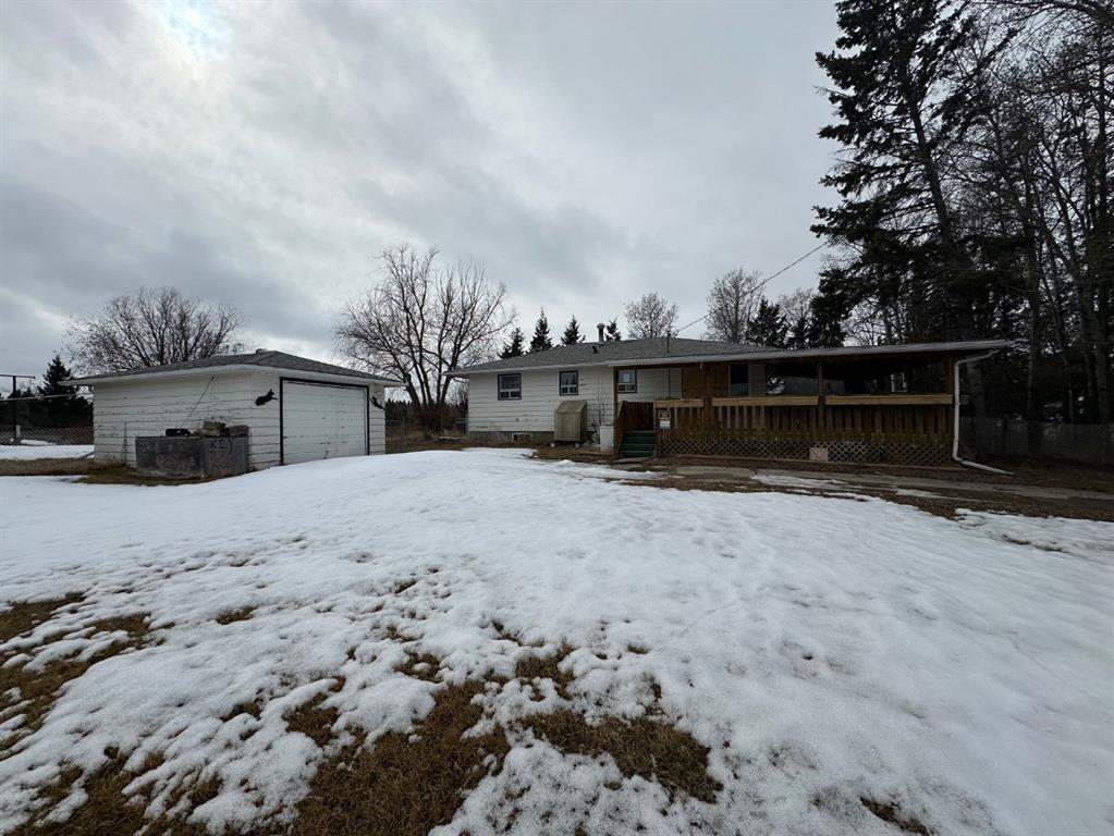 Welcome to 229 2 Avenue in Leslieville. A charming bungalow situated on 0.35 acres overlooking the Lobstick Creek. The massive corner lot has no immediate neighbours and has a detached, single car garage, greenhouse, garden boxes, and towering trees. Inside you will find timeless woodwork throughout the home. The open concept layout features the main floor living area filled with natural light and big enough to accommodate all your furniture. The gorgeous kitchen boasts floor to ceiling wood cabinetry, a huge island with a gas cooktop and a double sink, as well as tile floors. Open the patio door off the dining area to enjoy your summer nights on your covered deck. A 4 piece bathroom is just down the hall. The primary has a walk through closet leading to the stunning ensuite with a huge soaker tub in the corner and a stand up shower. Downstairs is ready for your personal touch to make it your own! With a little bit of work and love, this home will be an absolute stunner.