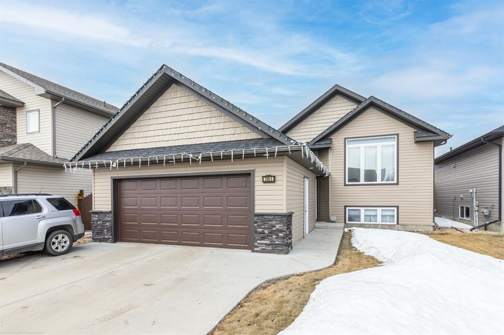 Welcome to this beautiful 5 bedroom family home located in a quiet Parkview location with no back neighbours! Welcoming you is a large entrance, vaulted ceilings and an open floor plan. The large dining room flows seamlessly to the kitchen with upgraded cabinetry, ample counter top space and an eat-up bar where company will gravitate to for visiting and conversation. Upstairs you'll also find a full bathroom, 2 large bedrooms with the master bedroom featuring a walk-in closet and an ensuite with large shower. The basement is completed finished with 3 large bedrooms, an additional full bathroom and a big family room. The 23x21 double attached heated garage has a drive thru overhead door for easy access to store items out of sight. The yard has been beautifully landscaped with a retaining wall, large covered back deck and hot tub to unwind after your day.Situated in a family-friendly neighbourhood, this home is close to schools, parks, shopping, and more, offering convenience at your doorstep. Don't miss the opportunity to make this lovely property your new home.