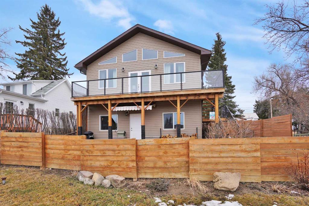 Now here's a home with the AMAZING mountain view that you would expect to see in Rocky Mountain House! Once inside the front gate you'll feel like you're stepping into your own private paradise with an airy west coast feel. The well laid out double lot has some beautiful landscaping features and a nicely tiered stairway that leads to the back yard, parking area and 20 x 22' detached garage (recently insulated). You can enter the home from one of the two convenient ground level doors or from the back deck. Once inside you'll feel the openness that the 9' walls offer on both levels and the large vaulted ceiling over the combination kitchen/dining/living room that leads to the west facing deck and the stunning views of the Rocky Mountains. Additional features include the large kitchen island with a quartz countertop and two beautiful leaded glass windows on barn door rollers in the dining area. The upper level also has a nice sized master bedroom with a 3 piece ensuite and over sized shower, smaller bedroom that would make a great home office, a laundry room with a pantry area and a four piece bathroom. In the lower level you'll find the cozy family room with a Blaze King wood stove, three more what could be bedrooms with the wardrobes that are included, plus a storage room, gym/craft or music room and another full bathroom. There's also a handy mudroom located next to the side entrance. Each room is equipped with radiant heating panels with their own thermostats so you can regulate the heat throughout all areas of the house. If you're looking for a home with some unique features you'll definitely want to check this one out.
