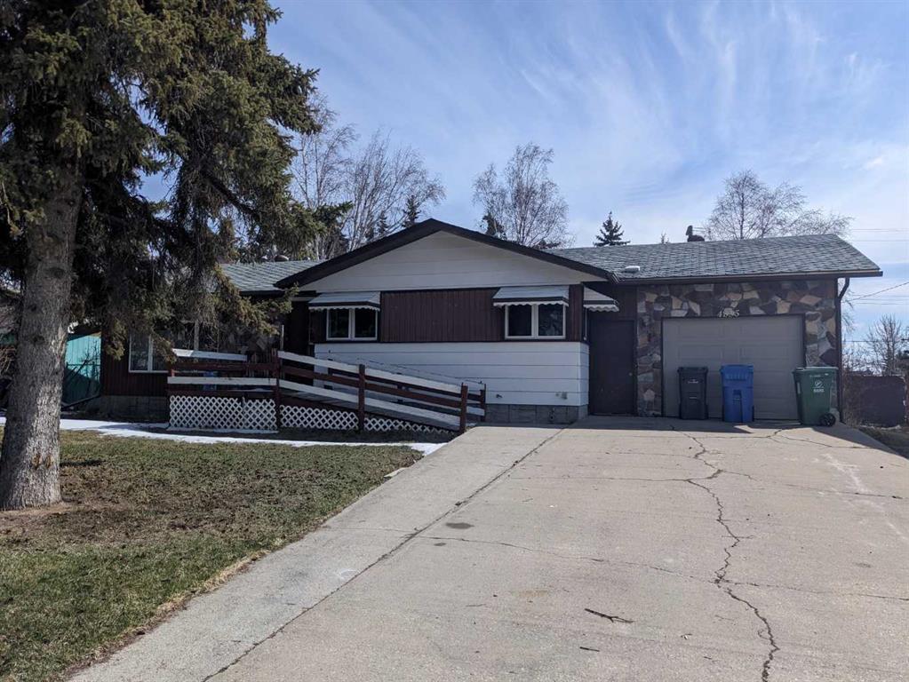 Mature bungalow in a mature neighbourhood of Rocky. A large bright living room will greet you as you enter featuring laminate flooring. A good-sized kitchen with eat-in dining area offers plenty of counter and cabinet space. There are 3 bedrooms on the upper floor, the primary room has dual closets, a patio access to the backyard, and a 2pc ensuite. The other bedrooms are a good size with closets and laminate flooring. On the main floor, you will find a 4pc bathroom that has had some modern updates and offers a deep soaker tub. The basement is partly finished with drywall completed and some ceiling. The bathroom downstairs has modern features with a deep bathtub. There is loads of storage downstairs. There is a garage that is 14 x 27 attached to the home. The home is situated on a good-sized lot that does seem landscaped and fenced and has a wood deck that is partially covered.
