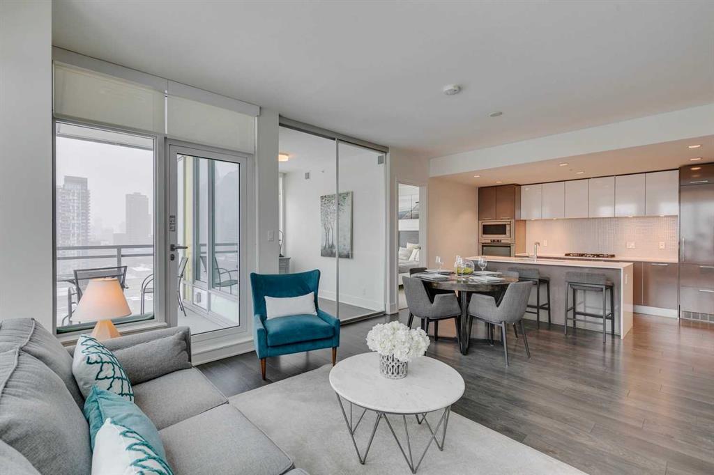 2 BEDROOMS & A DEN + 2 BATHROOMS | UNOBSTRUCTED DOWNTOWN VIEWS | 9’ CEILINGS | QUARTZ COUNTERTOPS | UPSCALE NOBILIA KITCHEN | OPEN & FUNCTIONAL FLOOR PLAN | LARGE BALCONY | WORLD-CLASS BUILDING AMENITIES | 24 HOUR SECURITY | HEATED UNDERGROUND PARKING | OUTSTANDING INNER-CITY LOCATION! The epitome of luxurious inner-city living awaits in the amenity-rich Mark on 10th building. This exquisite 2 bedroom + a den, 2 bathroom unit offers an opulent retreat with breathtaking downtown views. Flawlessly designed to be both stylish and functional, the open floor plan with grand 9’ ceilings is perfectly situated to make the most of those outstanding views through dramatic full-height windows. The upscale German-made Nobilia kitchen inspires culinary creativity featuring built-in stainless steel appliances, a gas cooktop, quartz countertops and a large water-fall edge peninsula island with seating. Centering the open design is the dining room with clear sight lines throughout making it perfect for entertaining. Encased in windows that expertly frame downtown views the living room entices time spent unwinding. The adjacent balcony will be your favorite warm-weather destination for summer barbeques, peaceful morning coffees and evening beverages. Work or study in the enclosed den while those outstanding views provide the inspiring backdrop. This ideal floor plan has the main living areas separating the bedrooms for ultimate privacy! Wake up each day to those sensational views in the calming primary oasis, a true owner’s escape thanks to the large walk-in closet and a sleek ensuite. A second full bathroom, a second bedroom and in-suite laundry add to your comfort. Underground parking and 24-hour concierge/security (no more lost packages!) further add to your convenience and peace of mind. The building’s world-class amenities are extensive including a well-equipped gym, a sauna, steam room, lounge, a tranquil garden and an open air rooftop deck with a hot tub, barbeques and firepits all nestled amongst the big city lights. Located in the midst of Calgary’s premier entertainment district, just steps away from vibrant nightlife, award-winning restaurants, pubs, diverse shops and much more! Inner-city living at its finest!