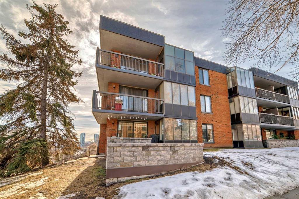 Welcome to your main floor 2 bedroom, 2 bathroom, PET FRIENDLY, condo in the heart of Calgary's vibrant Crescent Heights neighborhood. With almost 1100 sq ft of open-concept living, an abundance of natural light streaming through large windows, and patio doors to your own private patio, you will love your spacious, inner city home! Stepping into the spacious foyer, you notice the convenient access to the storage room and in suite laundry and the 3 piece bathroom. The kitchen features stainless steel appliances, ample cabinetry, and a spacious breakfast bar ideal for casual dining or entertaining guests. Enjoy the gas fireplace in the living room on cool evenings and the main floor patio on warm mornings! Retreat to the master bedroom, complete with a luxurious ensuite bathroom and generous closet space. The second bedroom offers flexibility for guests, a home office, or a cozy den, ensuring everyone has their own private space. Outside your door, discover the vibrant energy of Crescent Heights with its eclectic mix of cafes, restaurants, boutique shops, and parks just moments away. Say goodbye to the hassle of street parking with your own designated underground parking spot, providing security and peace of mind year-round. Don't miss this opportunity to elevate your urban lifestyle with this exceptional condo in Crescent Heights. Schedule your private showing today and make this stylish retreat your new home!