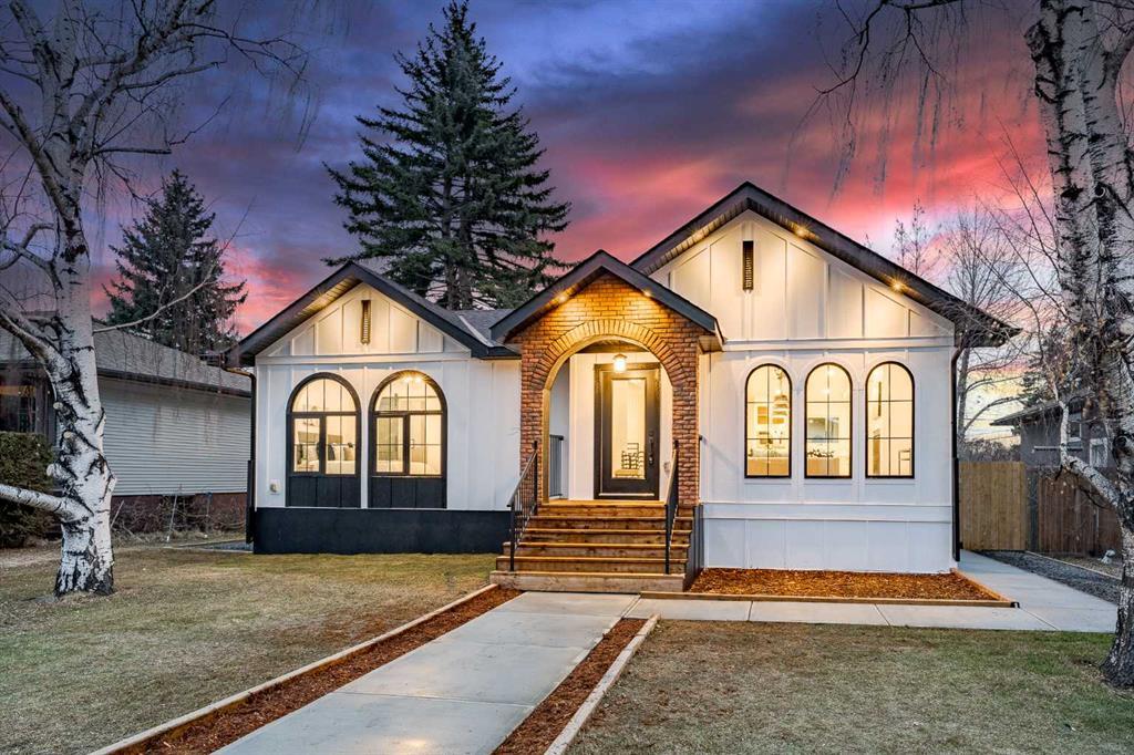 Dreams come true, in this fully renovated Wildwood bungalow. An utterly stunning blend of modern design and character features rarely seen in newer homes create an unmatched sense of charm and elegance. As you walk up, mature willows and professional landscaping frames the walkway, and you’ll notice a well-lit exterior with new springline windows and high-end Hardie board siding as you to step through the brick arch onto the front porch. Inside, the home has been completely remodeled, including front and rear additions for a spacious floor plan. Vaulted ceilings and excellent lighting paired with white-oak floors emphasize the bright and airy feel of this level. Arched windows along the side wall bring in an unparalleled amount of natural light to the living area, which centres around a gas fireplace. Your gatherings are sure to gravitate to the massive island at the heart of the kitchen, where you will love the stylish thick quartz countertop, industrial-chic pendant lights, and the farmhouse sink. White cabinetry and backsplashes form a sleek, clean aesthetic with contrasting details like the custom hood fan adding a stylish visual touch. A high-end KitchenAid stainless appliance package is included in this home. The adjacent dining area enjoys access to the deck through the sliding glass door, allowing you to move seamlessly between indoor and outdoor entertaining. A hanging barn door here opens to an impressive mud room, where herringbone tile floors are an attractive artistic element, extensive built-ins include a bench with coat hooks set into the shiplap feature wall, and floor-to-ceiling cupboards surround the washer/dryer. Down the hall, an expansive primary bedroom is a decadent retreat where vaulted ceilings and an accent wall create an upscale vibe. The walk-in closet includes extensive built-in’s, and the ensuite is incredible. Dual sinks are a great layout for couples, and both the freestanding soaker tub, or the rainfall shower with a bench make it feel like a luxurious escape. Plus, all the bathrooms in this home have heated floors and floating vanities. The second bedroom also contains a walk-in closet and an exquisite ensuite that make it feel like another primary suite. The final room on this floor embraces the trend of statement powder rooms, with luxe finishes that guests are sure to comment on. Downstairs, the fully finished basement has a lounge feel, with a wet bar next to the rec area. You will love the cozy carpet on this level. Another gorgeous laundry area, two more bedrooms with walk-in closets and a fourth bathroom tie it altogether. Upgrades include all new subfloors, trusses, furnace, A/C, plumbing, electrical & everything in between. There is a double detached garage off the alley, and all utilities have been relocated to underground. This area is one of Calgary’s best, with parks and schools nearby and great access to a huge range of amenities along Bow Trail, which can also get you downtown in under ten minutes. See this one today!