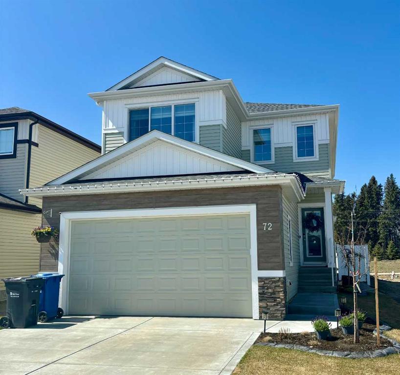 Welcome to 72 Emmett Crescent! Indulge in the essence of luxury living in the prestigious community of Evergreen! Step into this breathtaking Urban Barn inspired residence, meticulously crafted to capture your heart. A large entry welcomes you into an open-concept layout that seamlessly integrates the kitchen, dining, and living areas, offering a functional space ideal for entertaining guests. Delight in the impressive upgrades, including an oversized quartz waterfall island, modern light fixtures, and smudge-proof brushed stainless steel appliances. The dining area features a captivating feature wall, providing an inviting backdrop for memorable meals. Cozy up in the living room, enhanced by a color changing electric fireplace and custom wood mantle. The main floor provides additional conveniences including a private 2-piece bathroom, walk-through pantry, walk-through coat closet, and access to the west-facing deck overlooking the vinyl-fenced and landscaped backyard, complete with built-in dog run. Ascend to the upper floor and discover a generous bonus room, perfect for relaxation or entertainment. The primary retreat offers a luxurious escape with large walk-in closet, 4-piece ensuite including a soaker tub and shower. Find yourself breathless with stunning unobstructed sunset views from your primary suite. Additional highlights upstairs include two spacious bedrooms, a conveniently located laundry room and full 4-piece bathroom. The front attached garage is heated and fully finished. While the basement offers an open canvas for future development. Embrace modern convenience and comfort with central air conditioning, a smart home system, custom top-down blinds and quartz countertops throughout. Walking distance to St. Joseph High School, restaurants, grocery stores, and medical clinics, every convenience is within reach. Built in 2023 by Bedrock Homes, this home is basically brand new and comes with 9 years of Canadian New Homeowner warranty, ensuring peace of mind for the new owner. Don't miss the opportunity to experience exclusive living at its finest in the highly sought after community of Evergreen. Schedule your viewing today to witness the essence of luxury living! This home has to be seen to be appreciated.