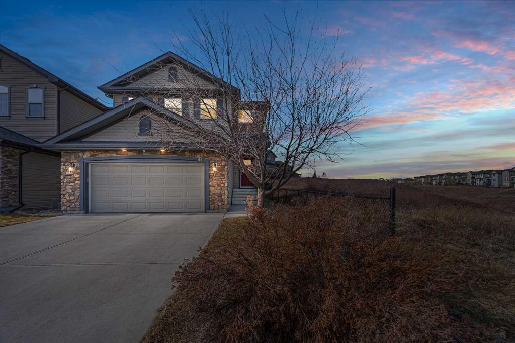 Former Showhome ideally located in Kincora! This community is charming with its impressive tower, rustic stone entry wall, and lantern-lit streets. It's perfect for anyone who wants to enjoy the outdoors in a small neighbourhood, with numerous walking paths spanning 120 acres of Environmental Reserve & Park area. This spacious two-story home sits alongside one of the beautiful ravines and walking paths. There are many high-end upgrades throughout this quality-built home including custom stained maple cabinets, granite counters in the kitchen as well as all bathrooms, beautiful hardwood floors, and tile with mosaic details in the kitchen, bathrooms, and entranceway. There is air conditioning on both levels, along with built-in speakers (even in the garage). The main level of the home includes a front living room and formal dining room. Walk-through from the dining room to the kitchen which is open to the breakfast nook and great room with a beautiful gas fireplace. A 2pc powder room completes the main level. Upstairs, the spacious bonus room is an ideal place to relax. Two large secondary bedrooms offer ravine views. The spacious primary bedroom features an office/sitting area with built-in shelves, a large walk-in closet, and a beautiful en-suite with a soaker tub and walk-in shower. A large bathroom and laundry room complete the upper level. The basement offers great potential for future development. The oversized garage is completely drywalled and finished. Some additional features in this home include painted feature walls, custom window treatments, extra lighting (including pot lights) upgraded basement windows with Sol-R shield, 9 ft ceilings on the main floor, 3-piece rough-in plumbing in the basement, high-efficiency furnaces, a gas BBQ hookup, a humidifier, and more! The sunny south-facing backyard is fenced and is complete with a large deck. The property is ideally situated with easy access to the airport & mountains via Stoney Trail. There are loads of amenities including pubs, coffee shops, grocery and big box stores nearby. Exceptional value in one of NW Calgary's premier communities!