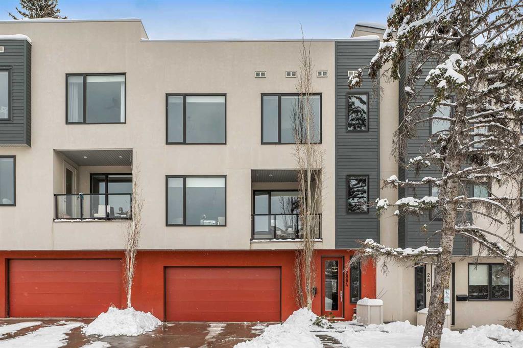 Crafted by renowned Parkhaven Homes, this chic 2-bedroom townhome exudes an industrial vibe, showcasing over 2,000 sq ft of meticulously designed living space. Ascend to the 420 sq ft rooftop oasis, boasting panoramic city vistas and adorned with built-in planters, perfect for al fresco gatherings under the open sky. Step into the main level, seamlessly accessible from the double attached garage, where an inviting office with 3-piece bath provides the ideal space for a private home office. Ascend to the second level, where an ambiance of sophistication awaits, accentuated by wire brushed hardwood floors and lofty 9’ ceilings, suffused with natural light. Entertain with flair in the expansive living room, boasting a retro floor-to-ceiling brick fireplace, seamlessly flowing into the dining area. The kitchen, a culinary masterpiece, boasts quartz countertops, pristine white cabinets, and an island/eating bar bathed in the glow of an industrial-style fixture, complemented by stainless steel appliances. A 2-piece powder room completes this level. Discover refined industrial chic on the third level, featuring 9’ ceilings, polished industrial concrete floors and two generously sized bedrooms, each accompanied by a private ensuite for luxurious comfort. The primary suite dazzles with an eye-catching feature wall, a spacious walk-in closet, and a lavish 5-piece ensuite, complete with dual sinks, a indulgent soaker tub, and a separate shower. A convenient laundry area adds a touch of practicality to this level. Savor leisurely afternoons and enchanting evenings on the rooftop patio, a serene retreat for relaxation or entertaining against the backdrop of the city skyline. Nestled in a central locale near the vibrant 17th Avenue shops and eateries, River Park, esteemed schools, shopping hubs, and public transit, with effortless access to the downtown core via 14th Street, this home epitomizes modern urban living at its finest.