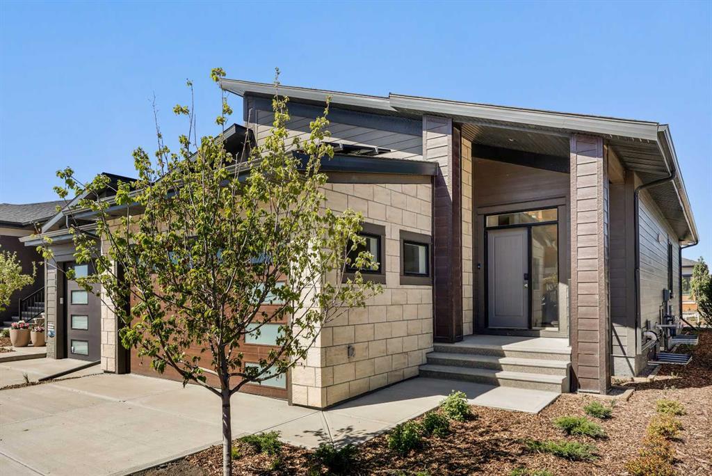 **Welcome to THE STREAMS of Lake Mahogany** A new standard in luxury living by Jayman. This picturesque enclave nestled within the community of Lake Mahogany boast the tranquility of lake living while having an abundance of amenities at your fingertips. All of which are surrounded by parks & pathways with stunning architectural guidelines to elevate your lifestyle. Featuring West Coast & Urban Contemporary Design you will discover the beautiful BENJAMIN lll floor plan featuring a FULLY FINISHED Basement with a beautiful exterior elevation. This gorgeous Bungalow will have you at Hello. As you enter, you seamlessly pass the mudroom & are welcomed into a stunning open kitchen area with a soaring 9ft main accented with QUARTZ countertops, sleek stainless steel appliances & lovely large centre island. Both the Great Room & Owner's Suite boast amazing site lines, with the Master including a "spa like" en suite showcasing dual vanities, standalone shower, oversized soaker tub & walk-in closet with laundry on the main floor for ease of convenience. The FULLY FINISHED lower level showcases a huge REC ROOM with LOUNGE AREA, TWO ADDITIONAL BEDROOMS, 2ND LAUNDRY and a FULL BATHROOM! Also including your DOUBLE ATTACHED GARAGE - ideal for all of Alberta's weather! The Streams takes its inspiration from the surrounding natural environment. It is that natural environment which has shaped and influenced the architectural style and landscape features within the community reflecting the beauty of the Lake and its surroundings. All while incorporating the leading technology in smart home necessities, BuiltGreen Canada Standard requirements and cutting-edge home efficiencies such as solar panels, UV-C ultraviolet light air purification system, High efficiency furnace with Merv 13 filters, Active Heat Recovery Ventilator, Navien-brand tankless hot water heater, triple pane windows, dual zone furnace and an electric vehicle charging rough in. ADDITIONAL FEATURES: Charcoal elevated palette, electric fireplace in Great Room, A/C rough in, undermount kitchen sink, gas cooktop, LED under cabinet lighting, built-in KitchenAid appliance package, QUARTZ counters in kitchen and bathrooms, railing on staircase leading to lower level, bright owner's suite with large windows, open to below feature, and laundry room with convenient folding counter and one with a hanging rack. Discover an elevated experience where you can enjoy an attached garage while still appreciating a maintenance free, lock and leave lifestyle. Welcome home to the Streams of Lake Mahogany.