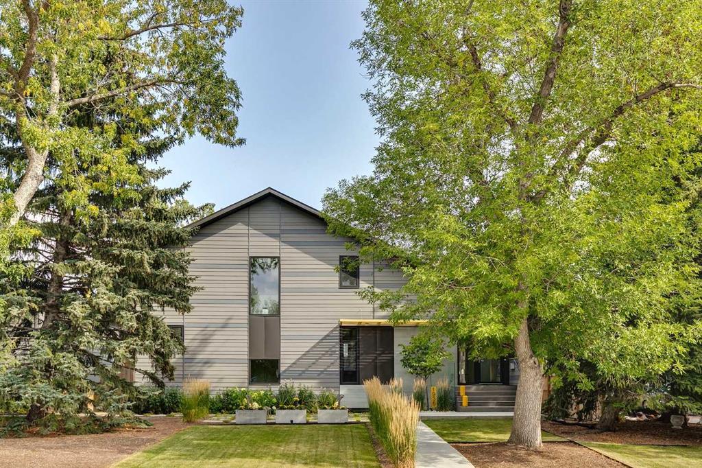 Welcome to this immaculate modern “Bungaloft” nestled on one of Glendale’s most picturesque tree-lined inner-city streets. This home is custom designed by the award-winning firm HOUSEBRAND, and is highly European influenced in quality, style, comfort, functionality and efficiency with soaring ceilings, clean lines, and bright open spaces that HOUSEBRAND is known for. Few expenses were spared which is evident in the quality of the construction using SIPS technology, high quality doors and windows, and the attention to design and detail. Luxurious European white oak plank flooring by Wood-Life runs through the entire home. The bespoke integrated cabinets and millwork are constructed with adaptability and functionality in mind.The primary bedroom, located on the main level, is a large, secluded retreat with a walk-in closet and bright spa-like ensuite complete with a glass shower, a deep soaker tub and designer tiling. The inspiring yet functional kitchen is wrapped with cabinets by Schenk, has a large 11’ island, integrated Miele appliances and a butler's pantry tucked around the back with an additional dishwasher, sink and cabinets perfect for the at home chef and those who like to entertain. The open “loft” dining room and living area is anchored by a modern stone fireplace surround with large windows overlooking the backyard. The euro-style sliding door opens onto a glassed deck and a meticulously manicured expansive garden – that brings the outside in -expanding the living area. The upper level has a large open space for the home office/ sitting room overlooking the main floor living and dining areas, 2 additional full-size bedrooms and 4-piece bath, not to mention an incredible hidden storage area spanning the width of the home. The home office includes walnut office built in cabinets, shelves, and desk area from Artane Millwork. The entire home is fitted with Innotech high-efficiency tilt-and-turn European style windows and doors flooding all levels with natural light. Continuing the loft like feel the basement boasts 9ft ceilings – it has large dug out windows with deep concrete sills, the 4th bedroom, a 3 piece ensuite, huge family room with wet bar and large fully equipped laundry room with bespoke cabinetry.The feature exterior walls are wrapped in stylish high-grade concrete composite tiles and Hardie board for low maintenance and longevity. The front & back yards are meticulously and professionally landscaped (with landscape lighting) and the rear deck is constructed with Trex composite for years of enjoyment.The property has a large double garage and is located close to an excellent community facility (including tennis club, pickleball courts, outdoor rinks etc), a wide variety of excellent schools & easy access to downtown by car (10 minutes), bus and or LRT. Finished in 2018, the house was new built on the existing foundation and as such enjoys the remaining part of the Alberta New Home Warranty