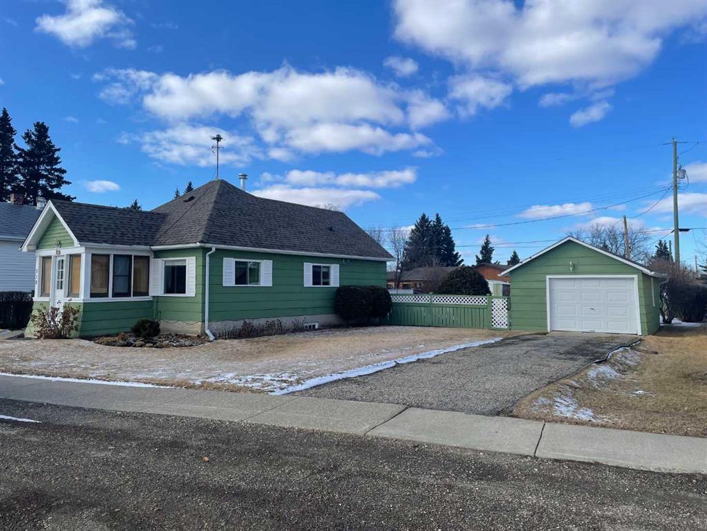 Simply adorable. Very welcoming and meticulously maintained. Clean, non-smoking, no-animal home. This parcel includes 2 lots, single detached garage, shed, garden plot, and 2 parking pads. The property is very accessible with back alley access and space for RV parking. Shingles were replaced in 2013. The home offers 2 bedrooms, a good sized 3-piece bathroom, main floor laundry, along with a beautiful eat-in kitchen, a large sitting room, and both a front and rear porch. It is very well laid out, comes with a back deck and plenty of yard space. Don't hesitate, call your Realtor for an appointment to view