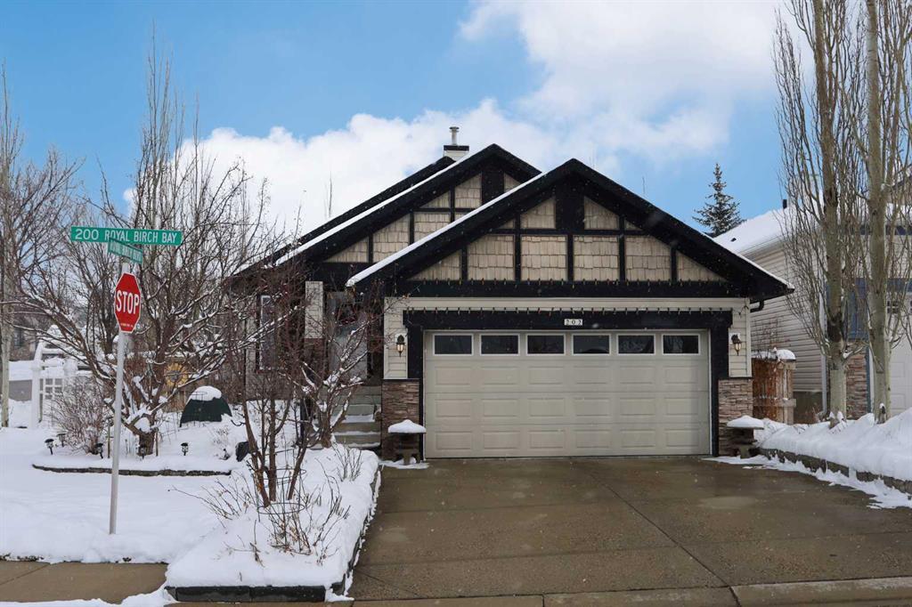 Only a few short minutes to neighbourhood schools, wide open greenspaces & bus stops is this warm & inviting bungalow in the popular family community of Royal Oak. This fully finished, one-owner home enjoys vaulted ceilings & hardwood floors, total of 3 bedrooms & 2.5 baths, central air & covered backyard deck...all on this beautifully landscaped corner lot. Wonderful airy & gracious floorplan featuring a fantastic living room with fireplace & big windows, spacious open concept dining area with sliding doors to the backyard deck & oak kitchen with granite counters & island, walk-in pantry & KitchenAid stainless steel appliances. Main floor master bedroom with walk-in closet & jetted tub ensuite with skylight, separate shower & granite-topped double vanities. Lower level is finished with 2 more bedrooms (1 currently being used as a family room), another full bath with granite countertops, office/study & rec room complete with wet bar. Main floor also has a home office with French doors & corner windows, powder room with granite counters & separate laundry room with LG washer & dryer. Both the front & back yards are beautifully landscaped, with winding gardens & flowerbeds, storage shed, covered deck & gazebo. Recent improvements include hot water tank in 2015, heat exchanger on the furnace in 2022 & filter in Feb 2024. Prime location only minutes to the Royal Oak shopping centre - featuring Sobeys, Walmart Supercentre, Canadian Tire & restaurants galore, Shane Homes YMCA, LRT & quick access to Stoney Trail.