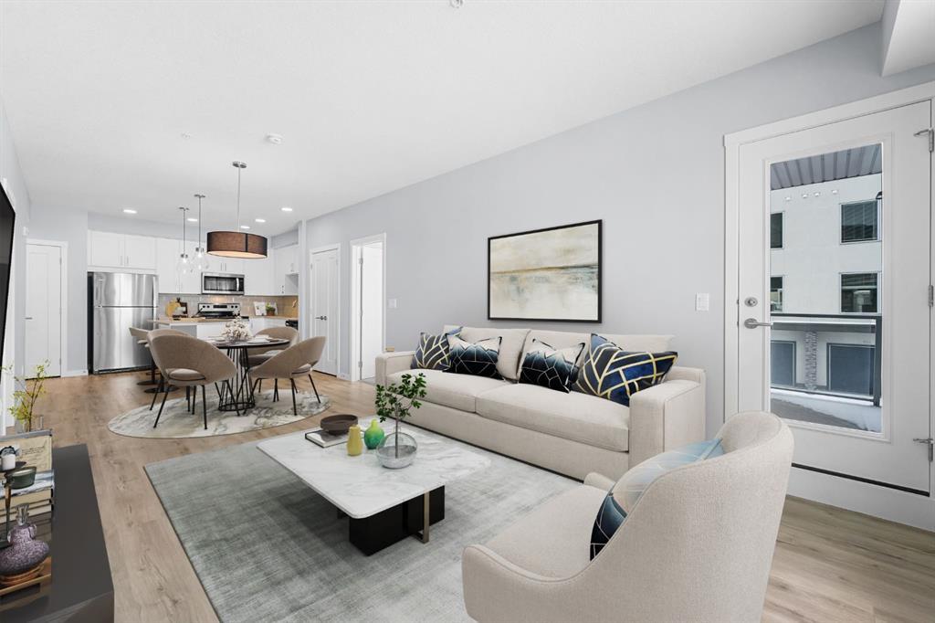 BRAND NEW beautiful condo in desirable Shawnee Slopes! Be the first to call this home your own, it's never been lived in! Bright and sunny 3 bedroom unit offering just under 900 square feet of luxury living. Thoughtfully designed, this unit offers an abundance of floor to ceiling windows maximizing the amount of natural light, including 3 windows in the primary bedroom with a cheater door to the balcony. The upgraded kitchen includes a full stainless steel appliance package, neutral granite counters, updated lighting package, large central island with breakfast bar, pantry, trendy white cabinetry all topped off with a modern subway tiled backsplash. Open to the kitchen is the dining & living room, blending the space for a fantastic entertainment area. The 2 spare bedrooms are divided by a 4 pc bathroom, while the primary bedroom boasts a huge 3 piece ensuite & walk in closet. Additional features include in-unit laundry, titled parking stall, titled storage unit & large balcony view expansive views. Situated in the sought after community of Shawnee Slopes with close, walkable proximity to shopping, parks, and the c-train, this is one you do not want to miss out on!