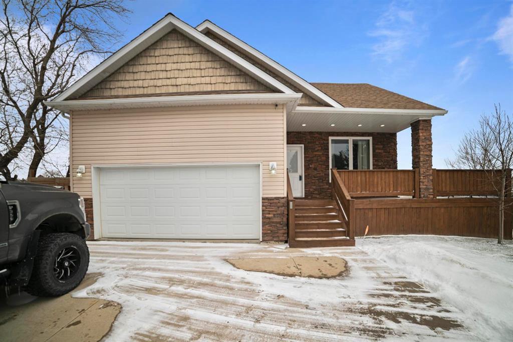 Welcome to your updated bungalow nestled in the quiet village of Bawlf. This charming home has 3 spacious bedrooms- with the primary having large walk-in closet and 4 piece ensuite with jetted bathtub. As you enter, you're greeted by the warmth of hardwood floors that run throughout the house and a corner gas fireplace creating a cozy ambiance. Kitchen has walk in pantry and plenty of extra storage. Lower level houses laundry, additional bathroom and huge entertaining area with wet bar already roughed in ready for your own design. Step outside onto the wrap-around deck with large fenced yard, perfect for outdoor parties or simply gathering around the fire pit area and toast marshmallows with friends and family. For those seeking extra storage space, the heated double garage provides ample room for vehicles, tools, and more. This bungalow offers the perfect blend of comfort, style, and convenience. Welcome home.