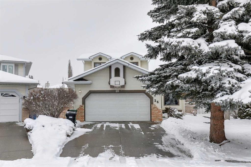 Welcome to this charming family home nestled in a serene corner boasting a coveted corner pie lot in the tranquil community of Scenic Acres. This nearly original residence offers a great layout ideal for a young family or a savvy renovator looking for their next project. Upon entering, you'll be greeted by an inviting living space adorned with hardwood floors, creating a seamless flow throughout the main level. The open living space features vaulted ceilings, enhancing the sense of space and brightness. The main level comprises a spacious living room, ideal for relaxation and gatherings, and a bright open kitchen equipped for culinary adventures. Adjacent to the kitchen, a cozy breakfast nook overlooks the expansive backyard, inviting you to enjoy leisurely mornings and casual meals. The adjoining family room boasts a warm fireplace framed by built-in shelving, creating a cozy ambiance for cozy evenings with loved ones. Convenience meets functionality with a main floor laundry room, powder room and large home office. Retreat upstairs to discover a serene primary suite complete with a generously sized bedroom, a 4-piece ensuite bath, and a walk-in closet. Two additional bedrooms on this level share a well-appointed 4-piece bath, providing comfort and privacy for the entire family. The fully finished basement adds versatility to the home, featuring a versatile living space, a fourth bedroom, and a convenient 3-piece bathroom, ideal for accommodating guests or as play room restroom. Step outside to the deck overlooking the sprawling backyard, where you can indulge in outdoor entertaining, al fresco dining, or simply unwind amidst the tranquility of nature. The mature lot is adorned with lush trees, providing shade and privacy, creating a serene outdoor sanctuary. Situated within a short walk to schools and conveniently located near the LRT station, this home offers easy access to amenities, including the bustling Crowfoot shopping area, recreational facilities, and major transportation routes, ensuring a lifestyle of comfort and convenience for the entire family. Don't miss the opportunity to make this wonderful home yours. Schedule your private showing today and experience the charm and convenience of Scenic Acres living firsthand!