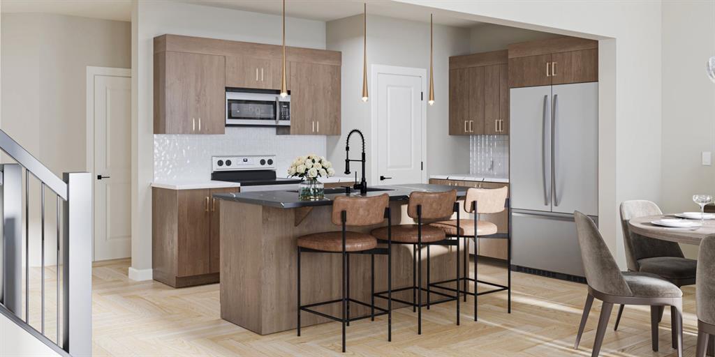 SEPARATE ENTRANCE | DOUBLE ATTACHED GARAGE | UPSTAIRS LOFT | BRAND NEW (TO BE CONSTRUCTED) | INTERIOR DESIGNED by Louis Duncan-He | 1,733 sq ft 3 bed , 2.5 bath | Built by Rohit Homes & Perfectly located at Sora in Hotchkiss, a neighbourhood known for its natural beauty and warm community feeling. The design interior in this unit is: 'NEOCLASSICAL REVIVAL' (you can choose other units with different finishings - contact) , creating a Timeless, Classic, Elegant, Poised, Exquisite, Grace and Luxury theme. UPGRADES AND FEATURES INC: quartz counters throughout, kitchen cabinets 42' tall, separate entrance, attached garage and so much more! Step inside to find yourself gravitate towards your large chefs kitchen, which includes SS appliances, quartz counters, large island (with place for bar stools), cabinets to ceiling (42' tall), walk thru pantry to garage (handy) - a perfect place to gather and create masterful meals. Off the kitchen is the nook, and living space. There are windows across the rear, and with the high ceilings as well as open floor plan, it leaves the home feeling bright and inviting. Upstairs, find 3 good size bedrooms, with one being the primary retreat, that includes a large walk in closet, and spa like retreat full en-suite. To complete upper level is another full bath, and laundry. There is separate entrance to basement. To wrap this up is an oversized single attached garage - a must have for our winters! This home is packed with features that make it a great option to consider for your next home purchase. Located just outside the ring-road, east of Stoney Trail, offering quick access to highways and other amenities on the southeast side of Calgary. Get moving on this captivating place - before it's gone!