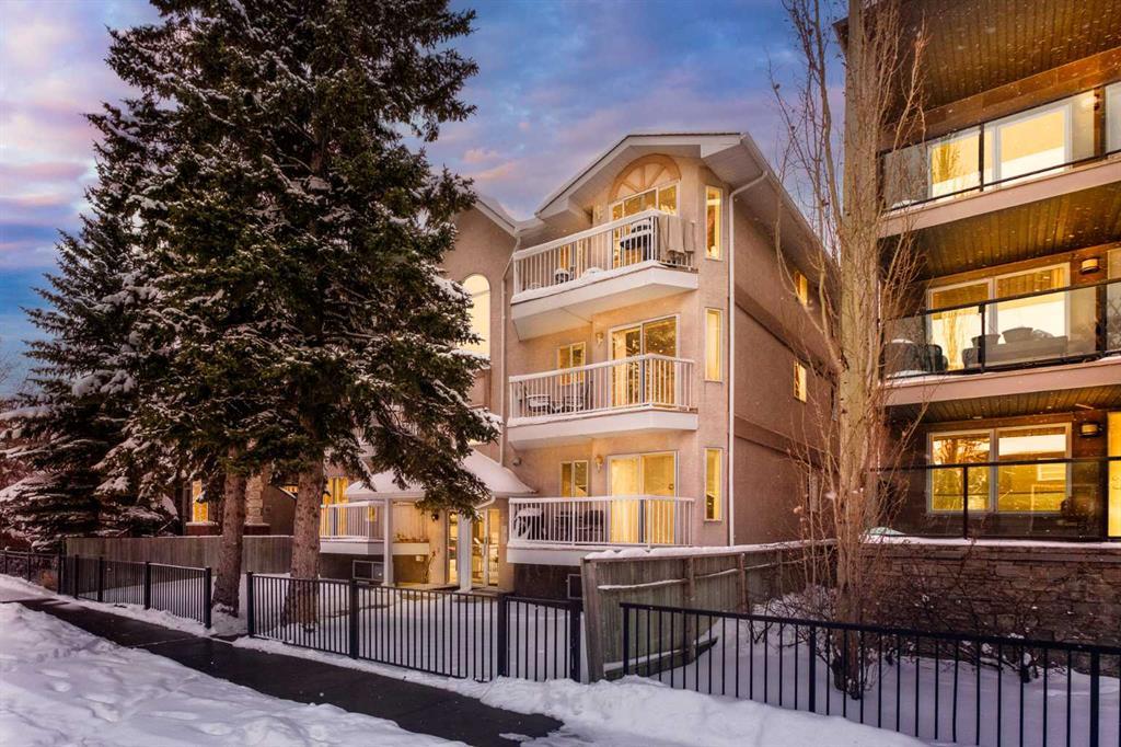 Welcome to this perfect multi-level condo tucked away on a quiet side street in the highly sought after Tuxedo Park! Over 1200 sq ft of living space which offers an open concept layout allowing natural light to pour into the home. The kitchen is a chef's dream which boasts ample counter space/cabinetry/newer appliances to prepare meals and perfect for entertaining large groups. Also a private balcony to enjoy your morning coffee. The lower level offers two oversized bedrooms, the primary bedroom has a large closet space/storage and a gorgeous renovated bathroom with heated tile flooring. Basement also includes a newer Samsung washer & dryer. This unit comes with an assigned parking stall and plenty of street parking for guests and family members. Just steps from your front door is a quaint dog park and all the amenities one could need with shopping, restaurants, transit just steps away! Many schools all within walking distance and close proximity to downtown core just a 5-10 min drive away! Weekends away to mountains and Banff made easy with just a jump onto 16th Ave! ALL FURNITURE is negotiable in the deal. This one is a must see!