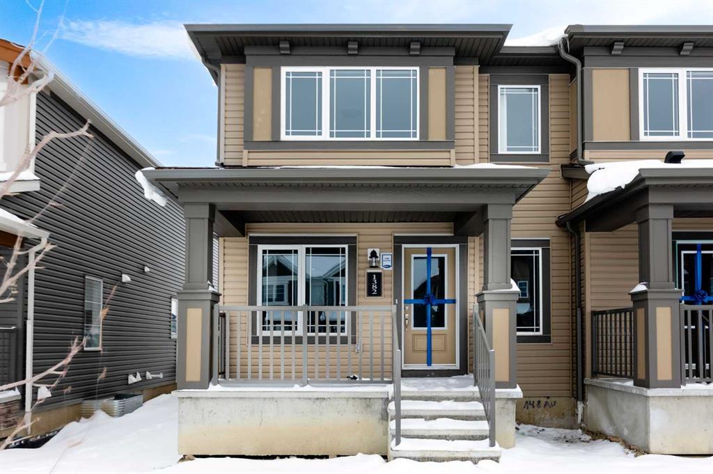 Welcome to this NO CONDO FEE END UNIT TOWNHOME! Impressive curb appeal and a modern design blends with a highly functional layout boasting 3 beds / 3 baths and over 1500 sq ft of finished living area. This home has also been highly upgraded throughout - raised kitchen cabinets with crown molding, upgraded luxury vinyl plank, quartz countertops, tiled bathroom floors, higher bathroom counters, larger bath tubs, as well as many additional pot light fixtures. Upon entry the open concept is exemplified with an inviting Kitchen/Dining/Living space on the main floor. The kitchen is equipped with stainless steel appliances, and loads of counter space and storage! There is also a cozy living room, a large pantry closet, a 2 piece bath and double attached garage. Upstairs, the primary bedroom is bright and spacious and has a private 4 piece ensuite with a larger soaker tub and higher cabinet. The bonus room provides more privacy for the primary bedroom from the other 2 bedrooms upstairs. There is also a full laundry room and 4 piece bath that completes the upstairs. The lower level is bright and has a 3 piece bathroom rough-in that is perfect for the future bedroom suite. With quick access to anywhere in Calgary via Stoney Trail and multiple nearby shopping options including Crossiron Mills, the quickly maturing community of Carrington is a great option for the busy family! Book your showing today!