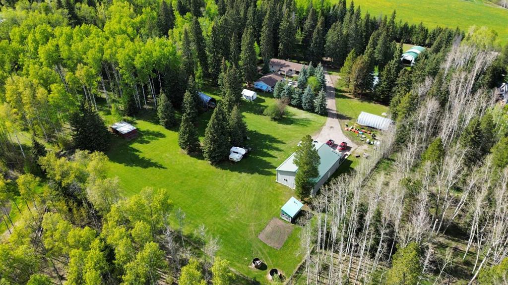 Near Cow Lake and close to Rocky Mountain House, this updated and quaint modular bungalow sits on a 4.2 acre gated lot, fenced on all 4 sides. Private with ample tree coverage featuring 12 outbuildings including a 40 x 60 shop with in floor heat, 2 ton hoist, all on its own septic field. A detached , double door, four car garage. A 50 x 36 Quonset with double sliding doors and concrete floor. Plus a further nine waiting to store all of your toys and equipment. The 4 bedroom home features 2 complete bathrooms, updated vinyl windows on almost all sides, spiral staircase , a spacious deck with a separate entrance for the basement below. The perfect place to retire or raise your family!
