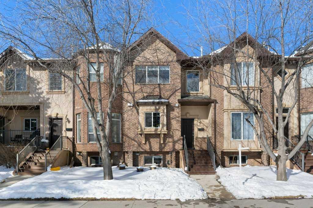 This elegant brownstone-style walk-up townhouse, nestled in the coveted West Hillhurst locale, boasts charming front gardens and a brick exterior that exudes timeless appeal. As you step into the grand foyer, adorned with soaring ceilings, the morning sun floods the space, welcoming you into a world of warmth and comfort. The new kitchen is a culinary delight, complete with a quarts island peninsula and stainless-steel appliances, including a 6 burner gas stove. Dual basin sink beneath a picturesque South facing garden window. Adjacent to the kitchen, a cozy dining area seamlessly flows into the inviting living room, showcasing refinished hardwood floors, a gas fireplace, and patio doors opening onto the west-facing deck perfect for basking in the afternoon sun. Upstairs you will find two generously sized bedrooms, each accompanied by its own private full bathroom ensuites. The primary bedroom is a retreat in itself, boasting a walk-in closet and an ensuite featuring a dual sink vanity and a jetted soaker tub, offering a tranquil escape after a long day. The lower level presents a versatile recreation room, ideal for use as a study or media space, complemented by ample storage and a convenient 19.5 ft x 17 ft double attached garage, ensuring both functionality and convenience. New stacker washer dryer combo in 2023. Hunter Douglas window coverings in the bedrooms. Attic insulation was upgraded to R50 in 2021. This impeccably maintained home reflects pride of ownership within the exceptionally well-managed 9-unit condominium community. With summer just around the corner you will love the quick access to all the park's and our amazing river pathway system. Short walk to Kensington shopping area and transit.