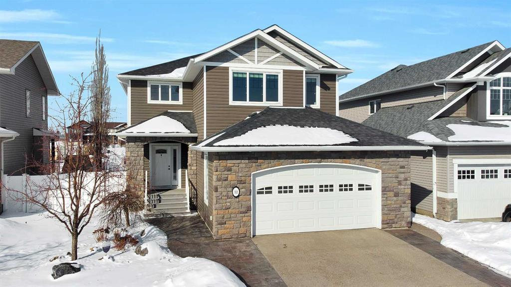 Welcome to this exquisite home meticulously designed and built by Canada West Homes! This beautiful two-story exudes luxury and comfort in every detail, with 9-foot ceilings and quality upgrades throughout. Nestled in the sought after Southbrook Neighborhood, this home offers unparalleled elegance and functionality. This open concept home boasts 3657 sq. ft. of developed living space. The main floor is complete with a light filled living room, built in modern gas fireplace, large dining area, kitchen and a main floor office/den. The kitchen is a gourmet enthusiasts dream including modern maple cabinetry with crown molding, expansive granite counterspace with undermount granite sink, granite center island with breakfast bar, stainless steel gas stove with vented range hood, matching high-end stainless-steel appliances and a walkthrough melamine shelved pantry. The mudroom includes laundry with a sink, maple cabinetry, matching front loading washer and dryer and 2 closets with a back door attached to the 24' wide double garage. There are three large bedrooms and two full bathrooms on the second floor, including a master suite that is a true oasis including: large walk-in closet, jetted soaker tub, double sinks, walk-in shower, enclosed toilet, and elegant tile floors; the second floor also has sizeable bonus room. The beautifully developed basement has 2 more large bedrooms and a 4-piece bathroom. The basement has a 9-foot ceiling, in-floor heating, large living room/entertainment area, wet bar and fridge, a movie projection screen/golf simulator enclosure and mounted speakers. Additional features include a new on-demand water heater (2023), high efficiency Lennox Elite furnace, HVAC fresh air system, HEPA air filtration, central air conditioning, central vacuum and water softener. Outside features beautiful landscaping in the front and back yard, a raised garden box and a huge southwest facing back yard with vinyl fencing. It has a half covered oversized, low maintenance/composite deck with glass railing, gas hook-up, and an attractive retractable awning. This stunning home backs onto a park and walking path which connects to the larger Red Deer trail system. It is conveniently located near schools, shopping, recreational facilities, restaurants and medical offices.