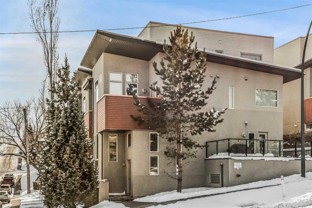 Nestled in the heart of Calgary's sought-after Marda Loop this beautiful townhouse awaits. Boasting over 1000 sq.ft. of living space, this inviting corner unit features 2 bedrooms and 2 bathrooms across three well laid out levels. As you step inside, the open layout welcomes you with gleaming hardwood floors, setting the stage for elegance and comfort. Natural light floods the living room through expansive windows, creating an airy, inviting space. The well-appointed kitchen showcases granite countertops, espresso cabinets, and stainless steel appliances. Step outside onto the oversized patio, conveniently located beside the kitchen, perfect for seamless outdoor entertaining or firing up the barbecue. Both bedrooms offer generous proportions, with the lower bedroom boasting heated floors and a spacious walk-in closet. A unique feature of this townhouse is its direct access to a single underground parking spot, ensuring convenience and comfort, especially during the winter months. Additional highlights include an in-suite laundry/storage room, ample closet space, an extra storage locker, and a dedicated bicycle storage room. Experience urban living at its finest with this impeccably designed townhouse, offering style, functionality, and unparalleled convenience in one of Calgary's most desirable neighborhoods.