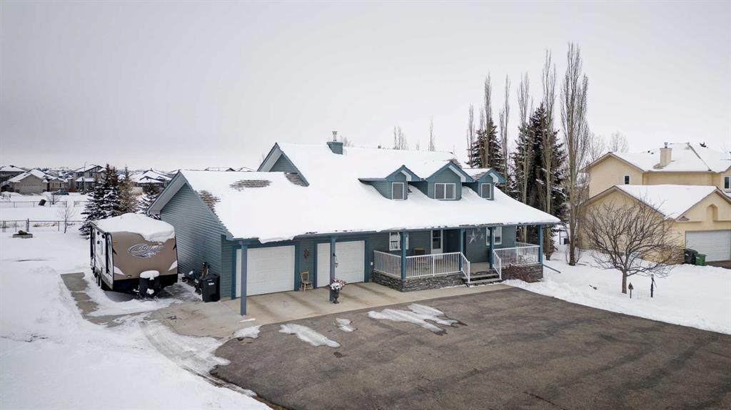 Welcome to your dream home in the prestigious Wildflower Estates area, where expansive living meets natural beauty. Nestled in a country park-like setting on a sprawling half-acre lot, backing onto the canal, this exquisite property offers the perfect blend of serenity and convenience. As you step into this custom-built bungalow, you'll be greeted by elegance and charm at every turn. High ceilings, and central curved staircase beckons you to explore further, while the warm glow of the gas fireplace invites you to unwind in the spacious living area. Entertain with ease in your kitchen, complete with a center island, plenty of cabinets and ample counter space. The adjacent dining area opens onto a large deck, perfect for al fresco dining and soaking in the breathtaking views of the lush backyard and canal. With four bedrooms in total, 2 of which are on the main level, there's plenty of room for the whole family to spread out and relax. Plus, the main floor boasts a true laundry room, making chores a breeze. CAR enthusiasts will delight in the extra-large attached double heated garage, which offers enough space for trucks and includes a generous workshop area. Lower level boasts in-floor heating, a Large recreation room with wet bar to entertaining family and friends, 2 more bedrooms and another full bath. For the ultimate man cave experience, there's also a SECOND oversized double detached garage in the rear, complete with heating for year-round comfort. With RV parking and enough parking space in your expansive driveway for at all your visitors, this property is perfect for those who love to entertain or simply enjoy the freedom of space. Outside, the covered front porch provides a welcoming entrance, and place to sit and relax at the end of a long day and watch the sunset. At the rear of the property you can enjoy an outdoor firepit offering the perfect spot for cozy evenings under the stars. Don't miss your chance to own one of the few estate homes in Wildflower Estates that backs directly onto the canal. Schedule your private showing today and experience luxury living at its finest. First time on the market, with Original owners who have meticulously maintained the home!