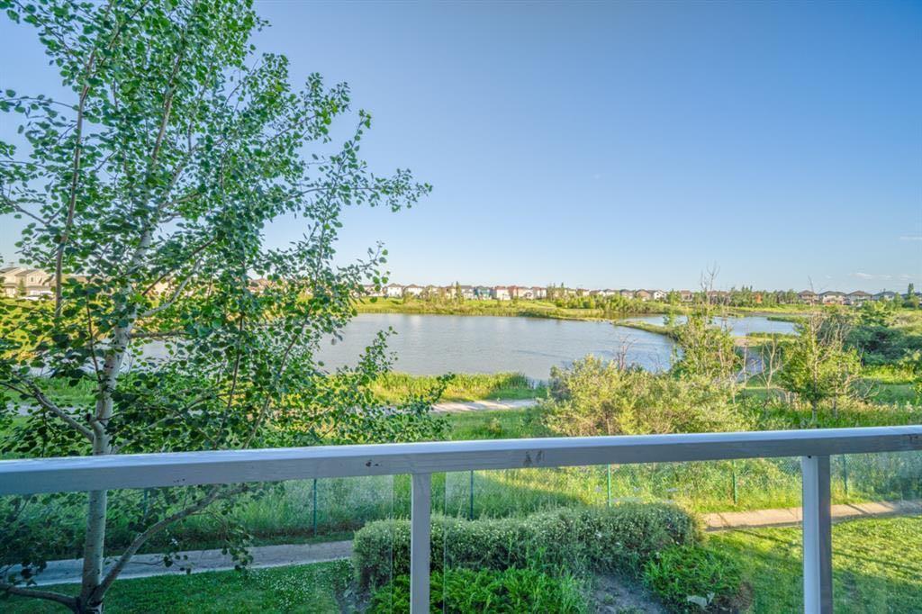 Beautiful view of pond! Main floor unit but raised with a west balcony! Enjoy your morning coffee overlooking the pond. This 1 bedroom plus den boasts large rooms and an open floor plan. Large primary plus a den that can accommodate a double bed with room to walk around it! Seller will have unit freshly painted and install new dishwasher, new stove and new hood fan and replace laminate flooring after tenants leave and before possession. All you have to do is move in and start enjoying your new home!!