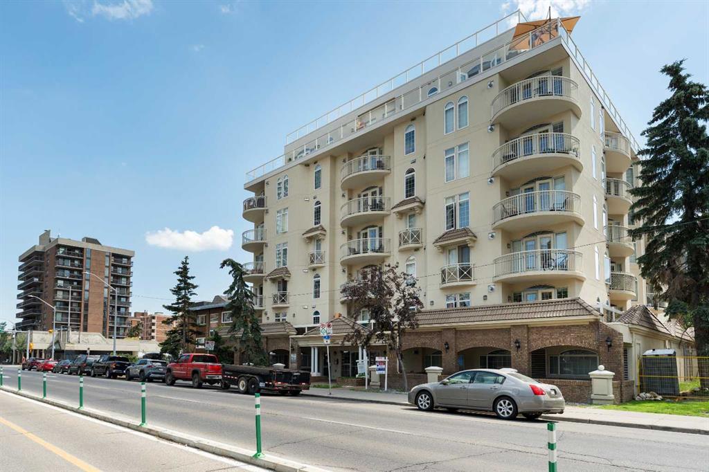 THIS IS A 2nd Floor UNIT! Experience the epitome of luxury living at The Monaco, an exquisite Mediterranean-inspired edifice. This 2-bedroom, 2-bathroom unit boasts a generous layout flooded with natural light. Revel in its contemporary design featuring In-suite Laundry, gleaming Hardwood floors, ceramic tile, and top-of-the-line stainless steel appliances including a Gas Range. Indulge in the comforts of a Jet Tub, a convenient Breakfast bar, and the elegance of Nine-foot ceilings and crown moldings. Entertain effortlessly with a gas Fireplace, BBQ gas hook-up, and revel in the pièce de résistance - your very own private oasis awaits on the expansive 227 sq. ft. WRAP AROUND BALCONY, offering breathtaking downtown views. Alternatively, unwind on the rooftop patio, soaking in the ambiance of the surroundings. Nestled in the heart of convenience, The Monaco offers unparalleled access to the bustling Downtown core, just a 5-minute stroll to the Sunalta LRT Station and trendy 17th Ave, where an array of shops, restaurants, and amenities await. And to complete this luxurious package, enjoy the convenience of a titled heated parking stall, ensuring your every need is met. Newer Dishwasher. Microwave new July 2024. A maximum of two (2) of these pets in any combination?Small dogs (20lbs maximum adult weight)?Cats,rabbits, guinea pigs, hamster, gerbils?Birds(maximum 2 birds, if large).?Small fish, limited to one 10-gallon tank, or 5 bowls.