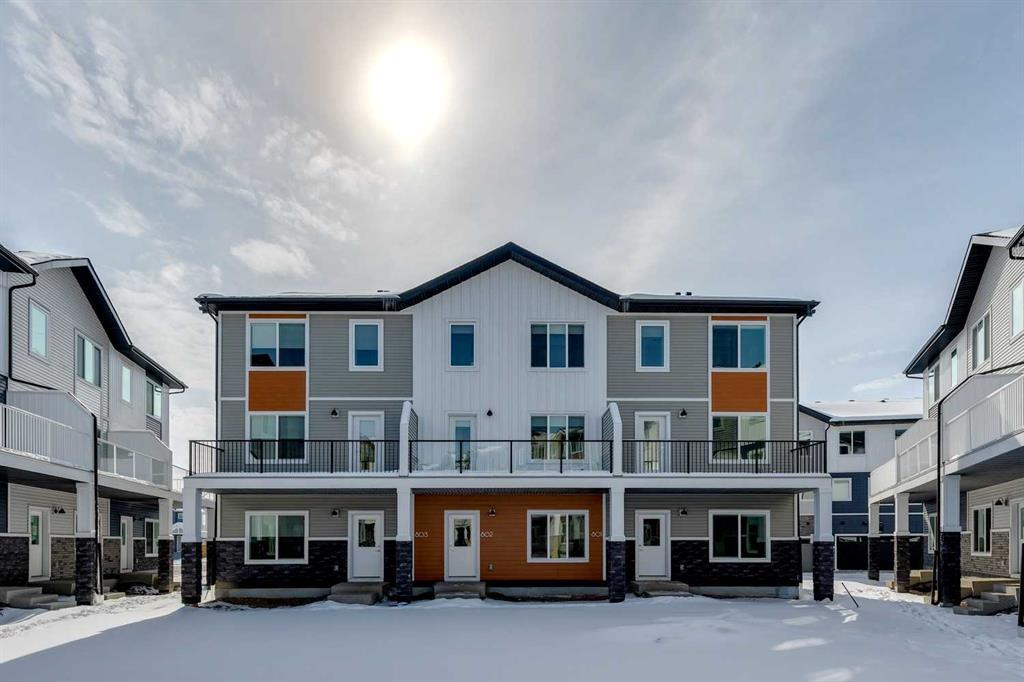 Brand new END UNIT townhouse in Pinecreek Calgary! Enter the front door and head up the stairs to reach the bright and open main area, where you’ll find a spacious modern kitchen equipped with stainless steel appliances, a large island, and plenty of cupboard storage. On one side of the kitchen, a spacious dining room filled with natural light, while on the other side, a cozy living room provides access to the sizable balcony. A convenient 2 piece bathroom completes this main floor. Heading up the stairs, you’ll first find the laundry area, before reaching the primary bedroom which features a walk-in closet and 4 piece ensuite. 2 more bright bedrooms sit on the upper level, which also houses a 4 piece bathroom, making this home suitable for a family. The final bedroom sits on the lower level near the main entrance and double attached garage – which ensures your vehicle will remain secure and snow free year round. This property is brand new and has never been lived in, meaning you won’t have to worry about maintenance or repairs for a very long time. As both unit 801, and the adjacent unit, 802 are for sale, this could be a unique opportunity for you and a loved one or friend to purchase side by side units. Be one of the first to call this new community home. Book a showing today!