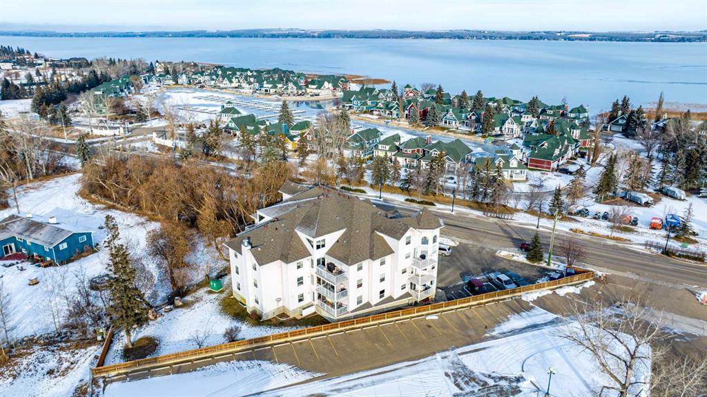 Introducing Oceana Place – a sunlit condo located on the coveted Lakeshore Dr, offering comfort and lifestyle. This 2-bedroom, 2-bathroom condo features expansive windows, allowing in an abundance of natural light. Upon entering, you are greeted by a charming entryway with shiplap walls. The clever separation between the entry and the main living area ensures a sense of privacy. The primary bedroom contains a walk-in closet and private ensuite bathroom. The utility room is equipped with a stackable washer and dryer and an abundance of storage cabinets,. The kitchen features new appliances such as a dishwasher, sink, faucet, and hood-range. The guest bathroom has undergone a stylish transformation with new sinks, faucets, and lighting. The living room is the heart of the home, adorned with a gas fireplace that serves as a focal point, the fireplace features a new stone surround, hearth, and a natural wood mantle. The entire unit has vinyl plank flooring throughout. Oceana Place offers an underground parking stall for your convenience, and a designated workspace in the underground garage allows a space for small projects. Step outside to discover a large backyard space with a firepit, where residents gather weekly in the summer for social visits. The location is ideal, with proximity to Sylvan Lake Golf and Country Club, the Marina, and downtown, ensuring you're at the heart of the community. This is more than a home; it's a lifestyle. Oceana Place invites you to experience lakeside living at its finest, combining modern convenience with the warmth of community gatherings.