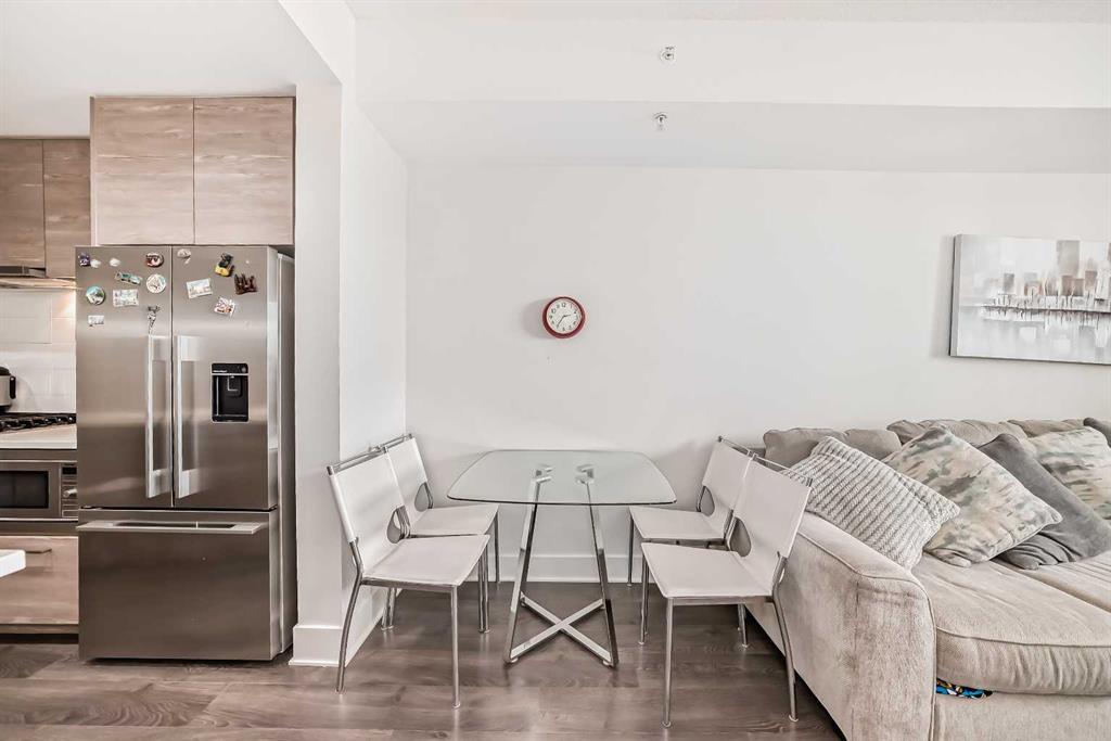 FIRST TIME HOMEBUYER AND INVESTOR'S CHOICE. Move in ready, or tenant placement ready. Discover urban living and the vibrant community of Bridgeland in this fully furnished, well appointed 1 bedroom condo. This unit features a modern, open-concept design with high-quality finishes, including a gourmet kitchen equipped with gas ranges, stainless steel appliances, quartz countertops and floor to ceiling cabinets. The bright and airy living room offers large windows overlooking a tranquil courtyard and park. The great size bedroom boasts a functional walk-thru closet that connects to the ensuite 4 piece bath with soothing soaker tub. Enjoy the comfort of air conditioning, in-suite laundry, and a private balcony for peaceful views. Residents benefit from exclusive building amenities such as a state-of-the-art fitness center, an outdoor courtyard with BBQ area and community planters, a party room with movie theatre, and secure underground parking. This building is also pet-friendly building and its perfect location offers easy access to the city's best dining, shopping, and entertainment options, as well as public transit for effortless commuting. Come and check it out today!